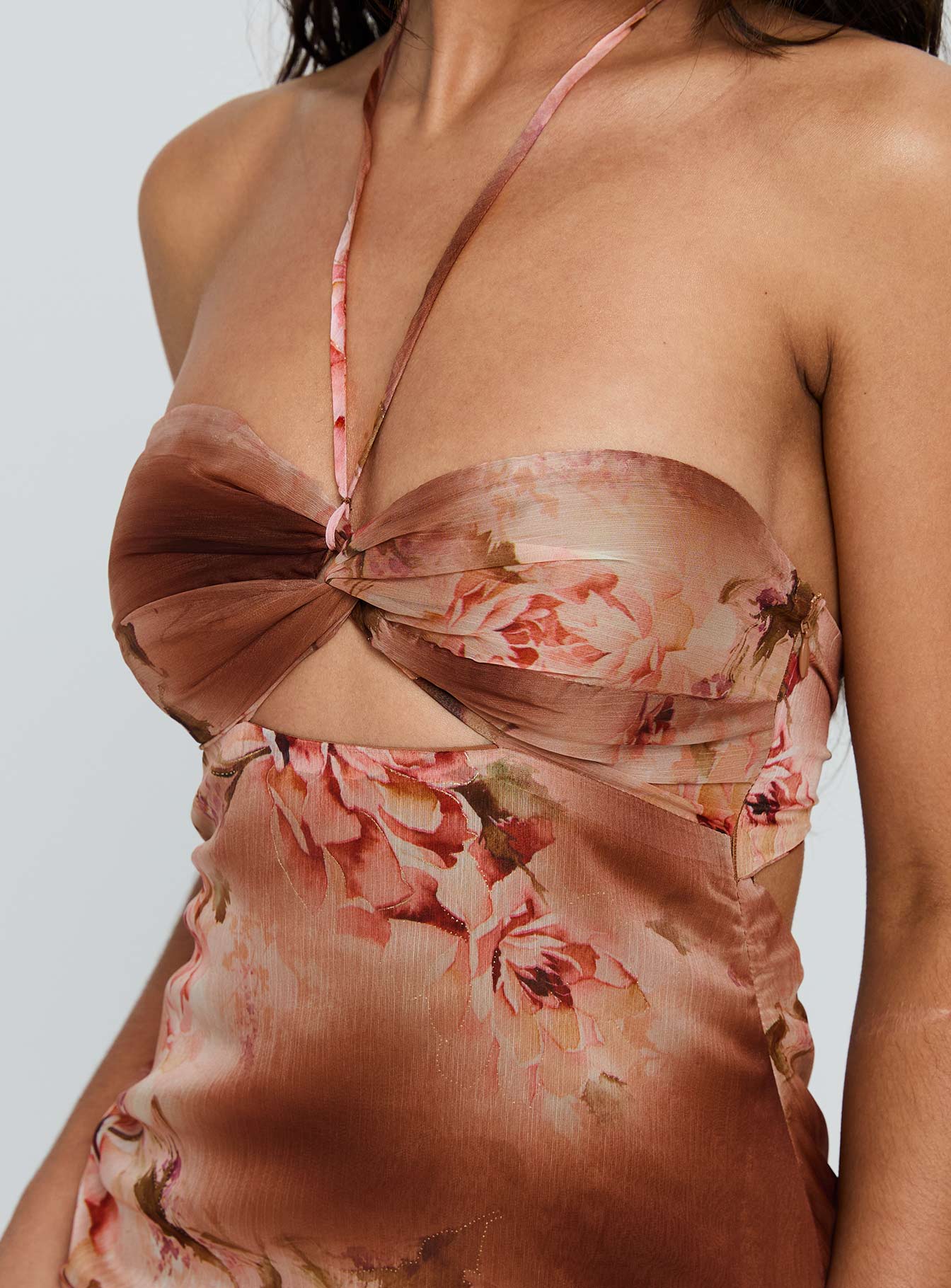 Elorie Long Sleeve Maxi Dress Blue / Brown