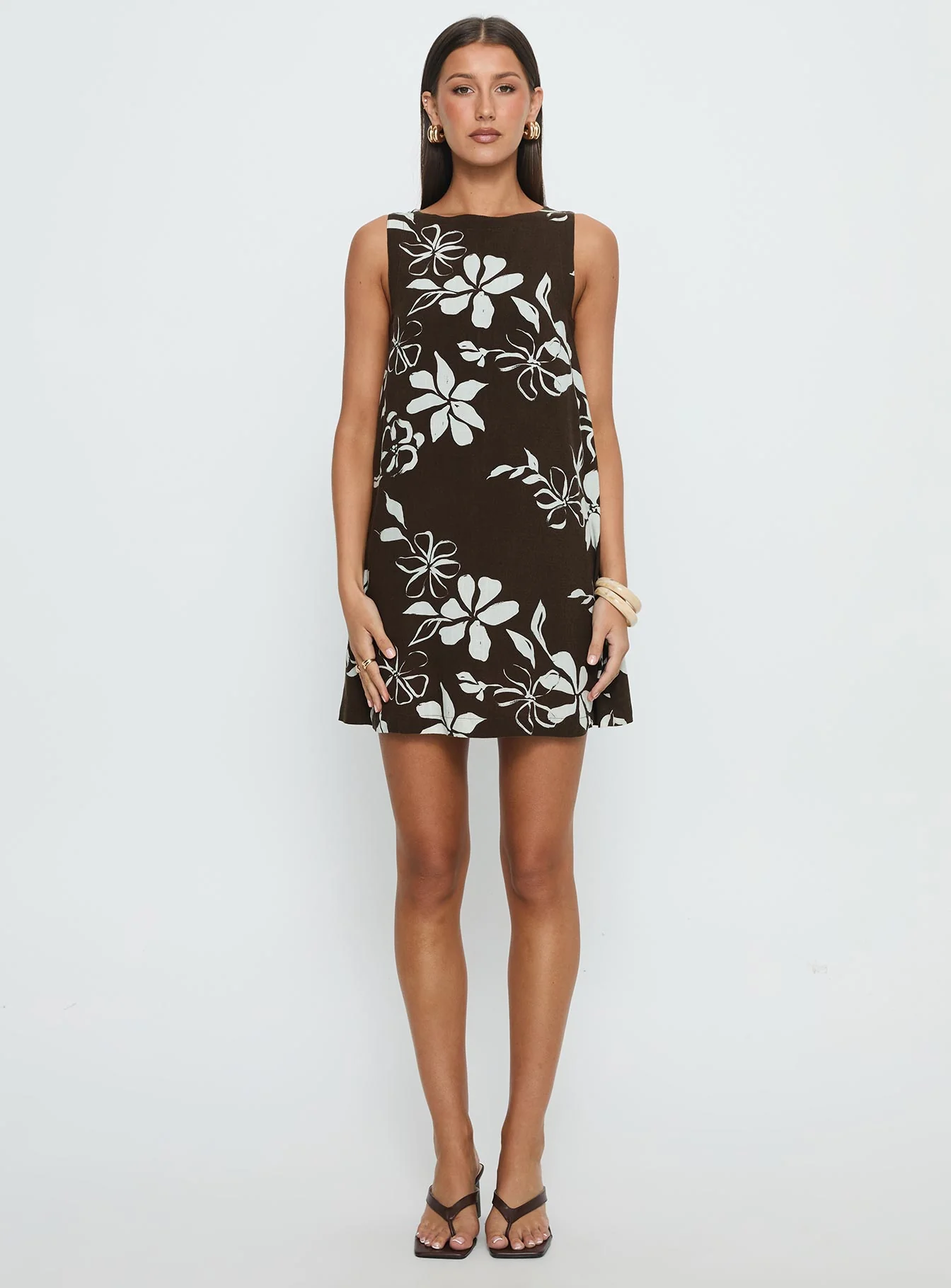 Fleuretta Embroidered Midi Dress Blue / Brown