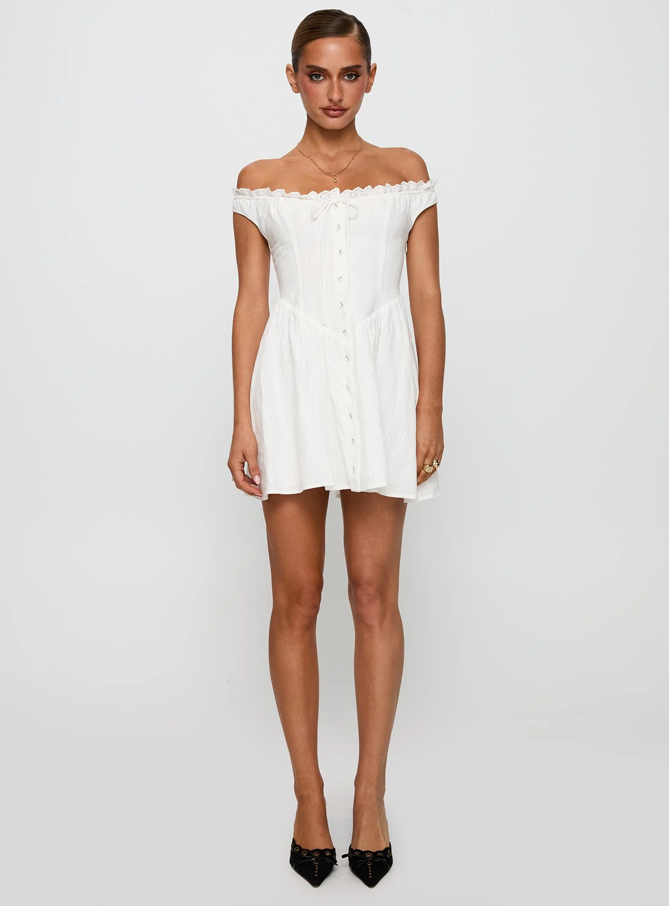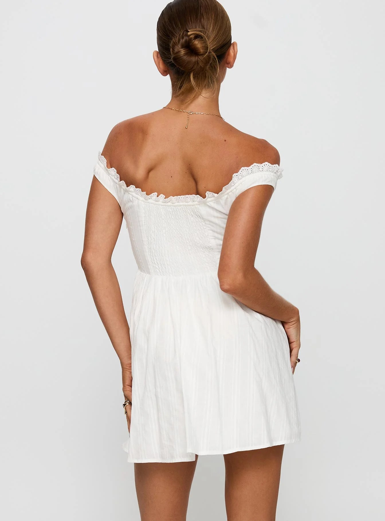 White Horse Off The Shoulder Mini Dress White