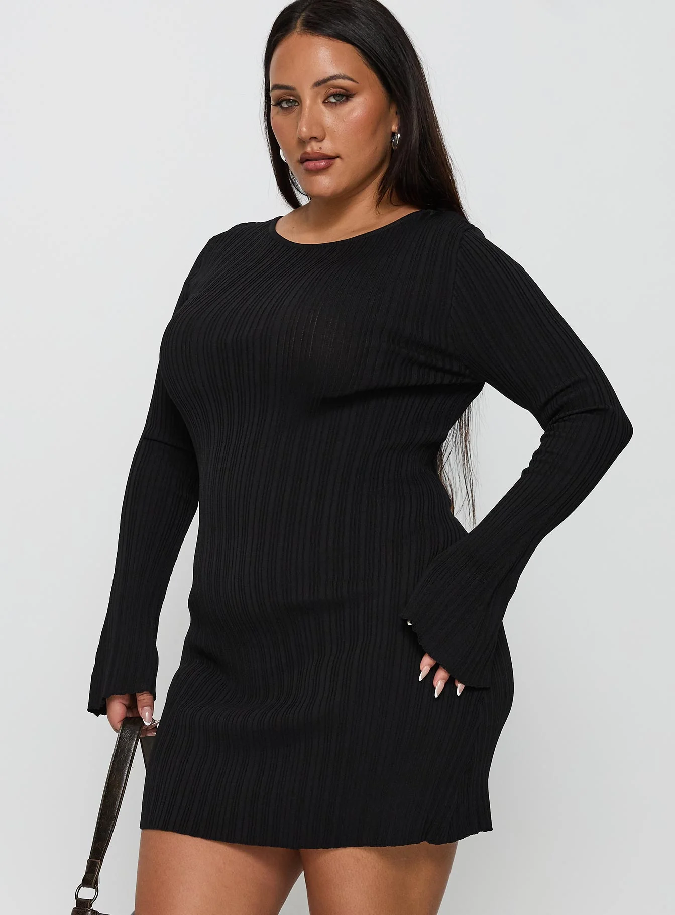 Mayok Long Sleeve Mini Dress Black Curve