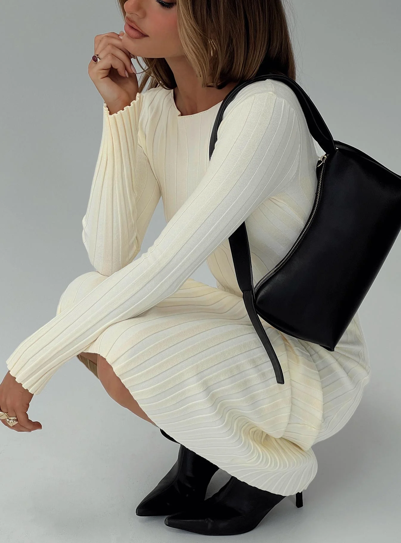 Ryo Long Sleeve Rib Maxi Dress Cream