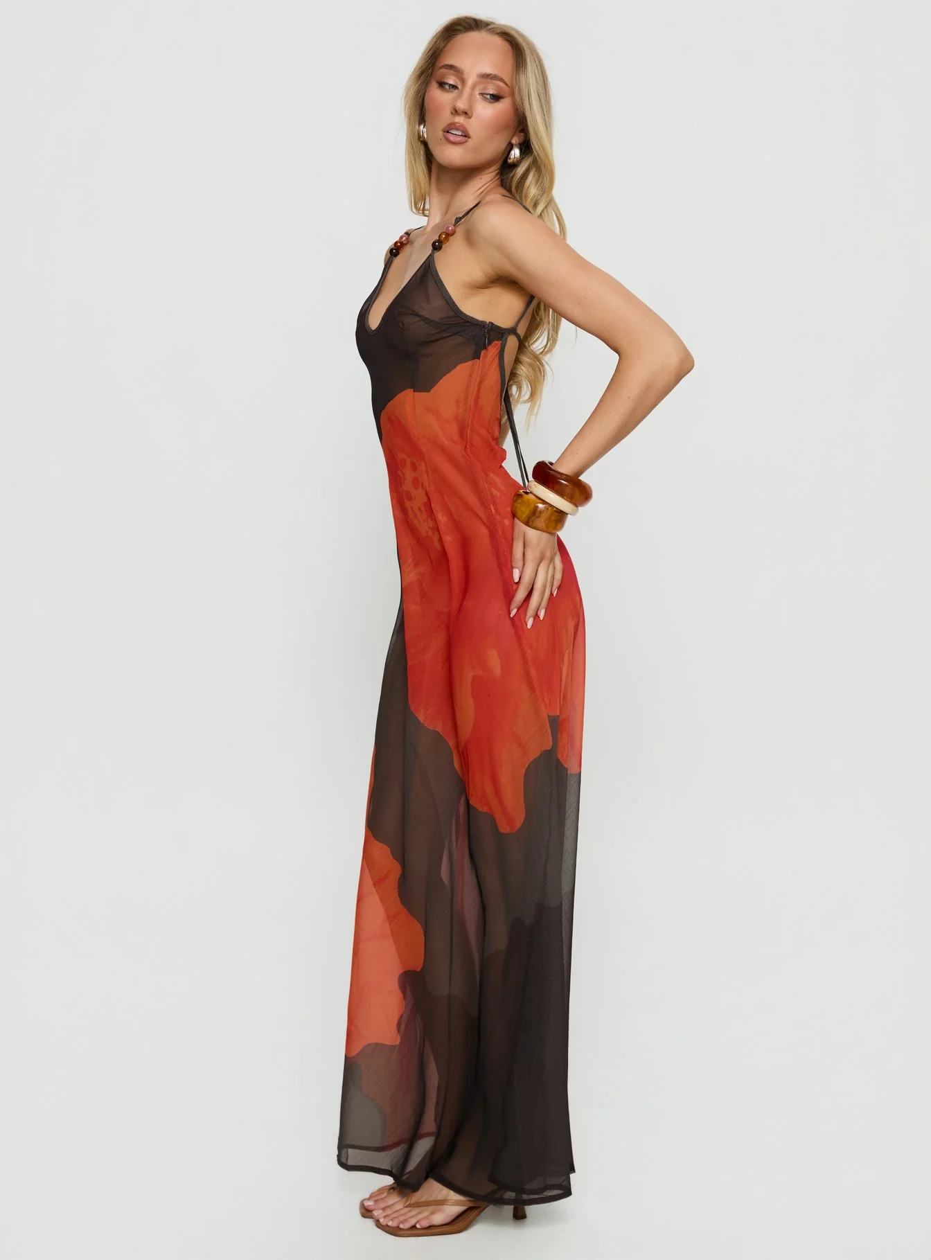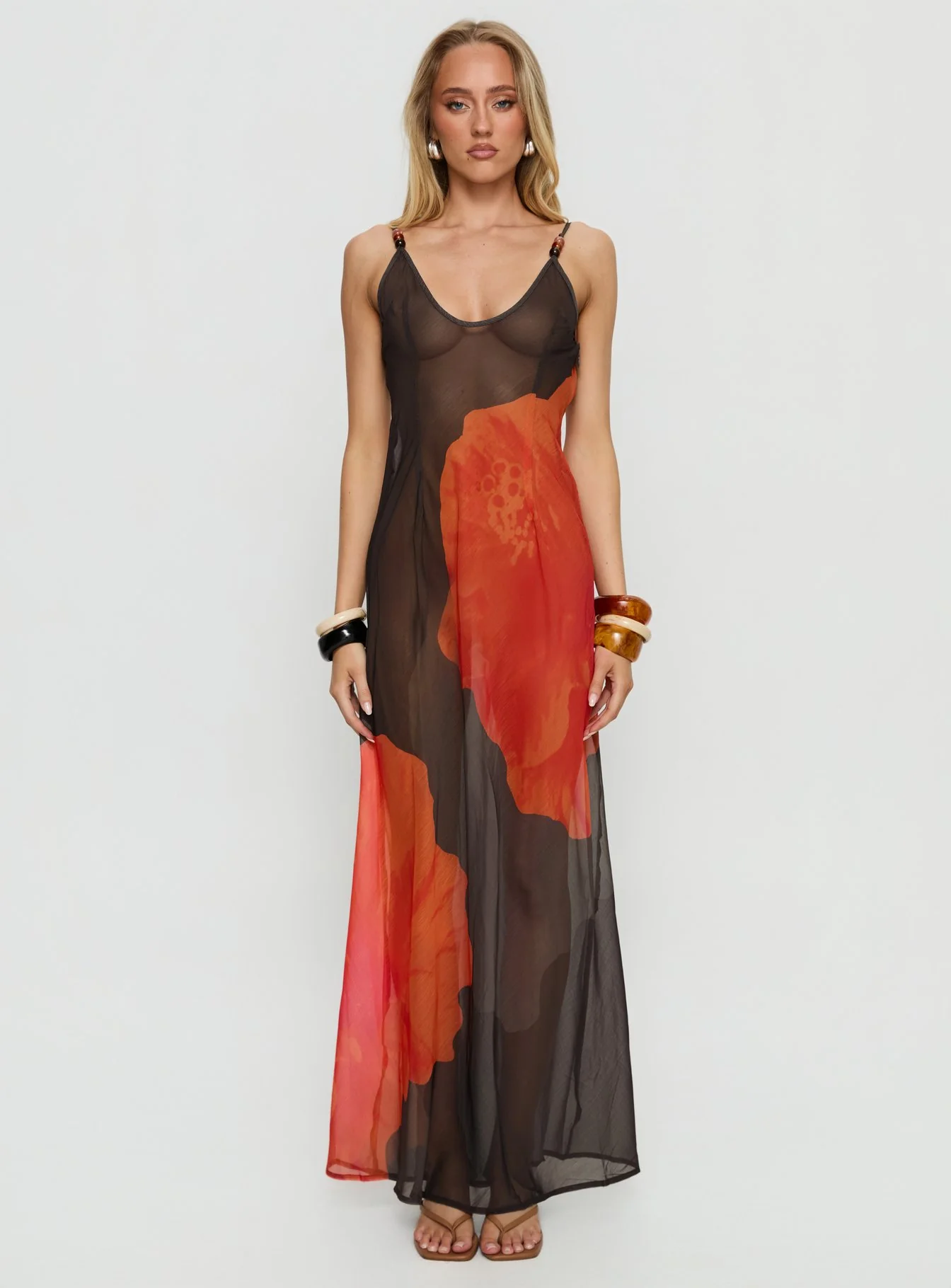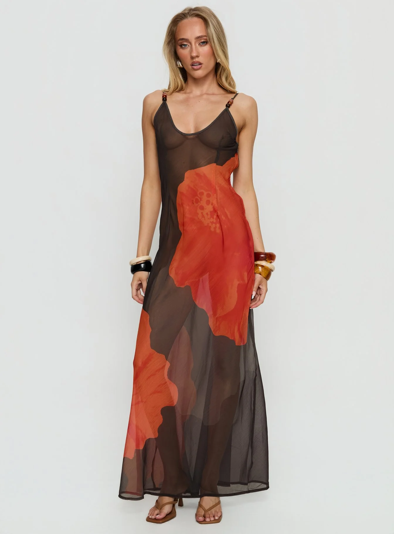 Carita Sheer Chiffon Maxi Dress Brown / Orange Floral