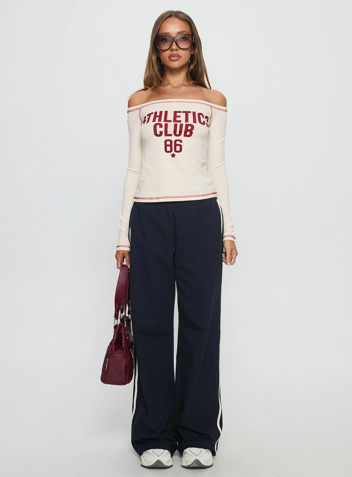 Athletics Club Long Sleeve Graphic Top Cream / Red
