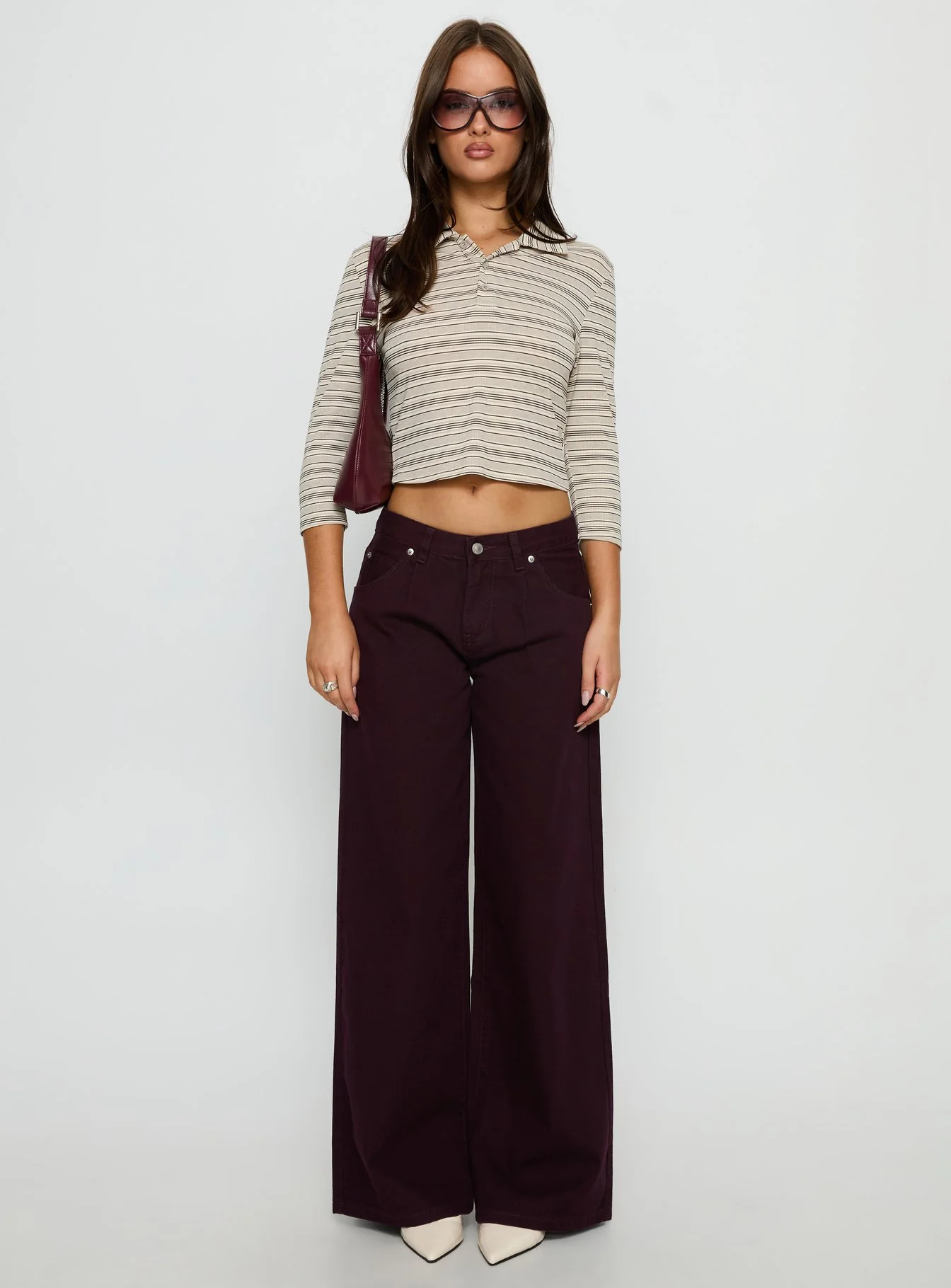 Jaeda Collared 3/4 Sleeve Top Stripe