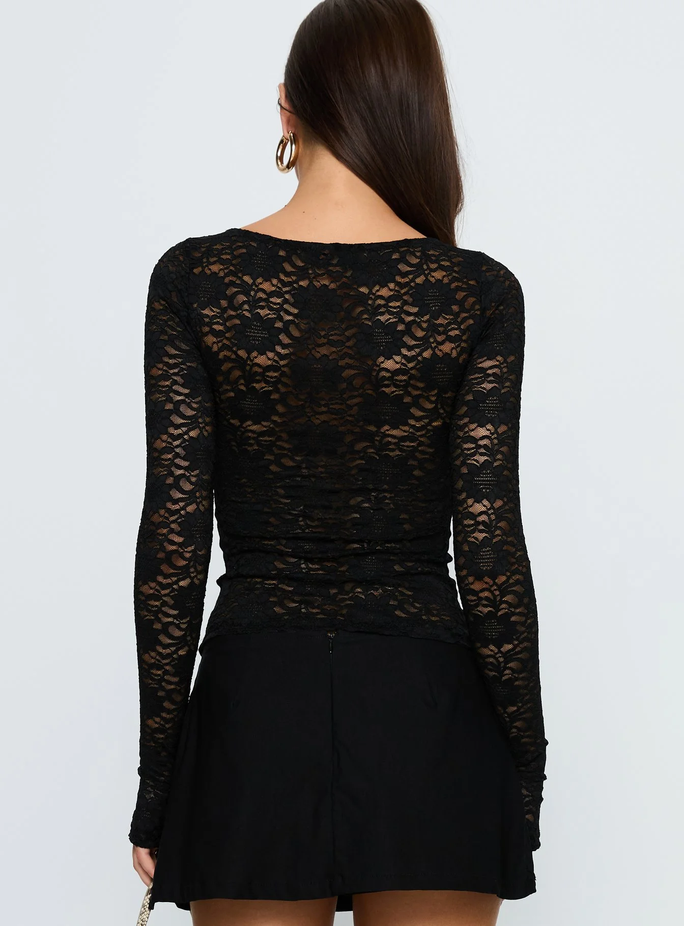 Whitnea Long Sleeve Lace Cut Out Top Black