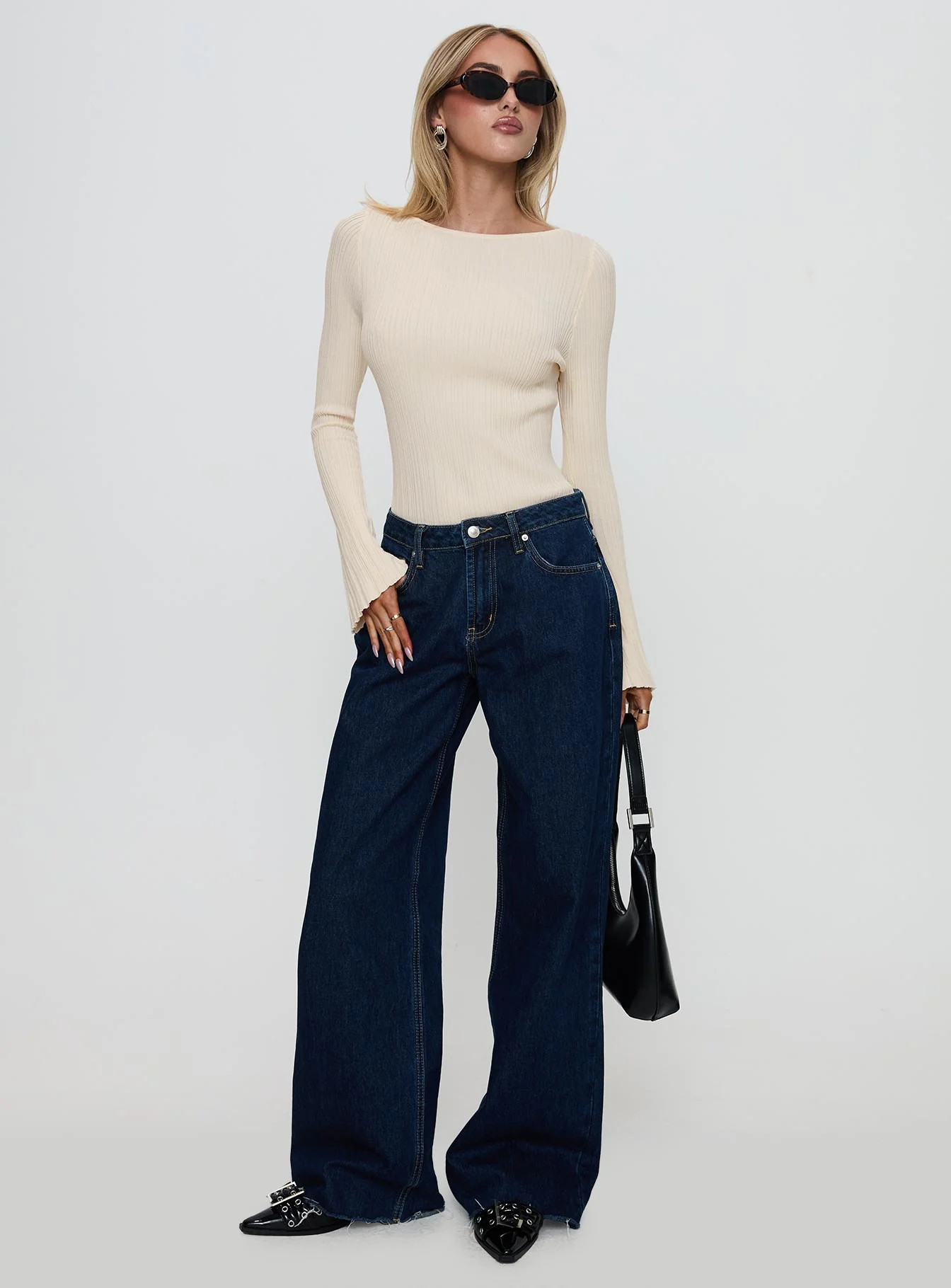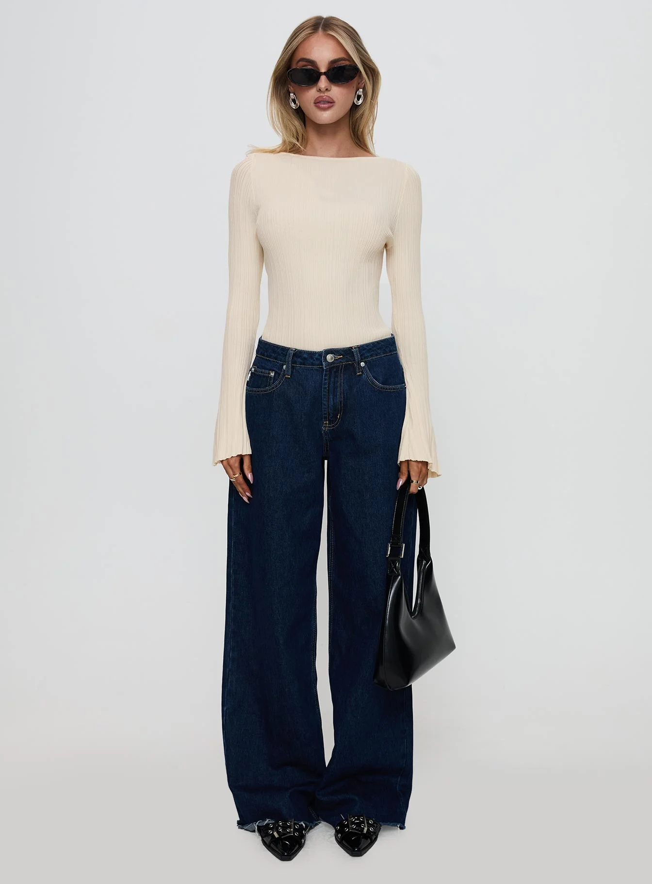 Harpur Long Sleeve Backless Top Black