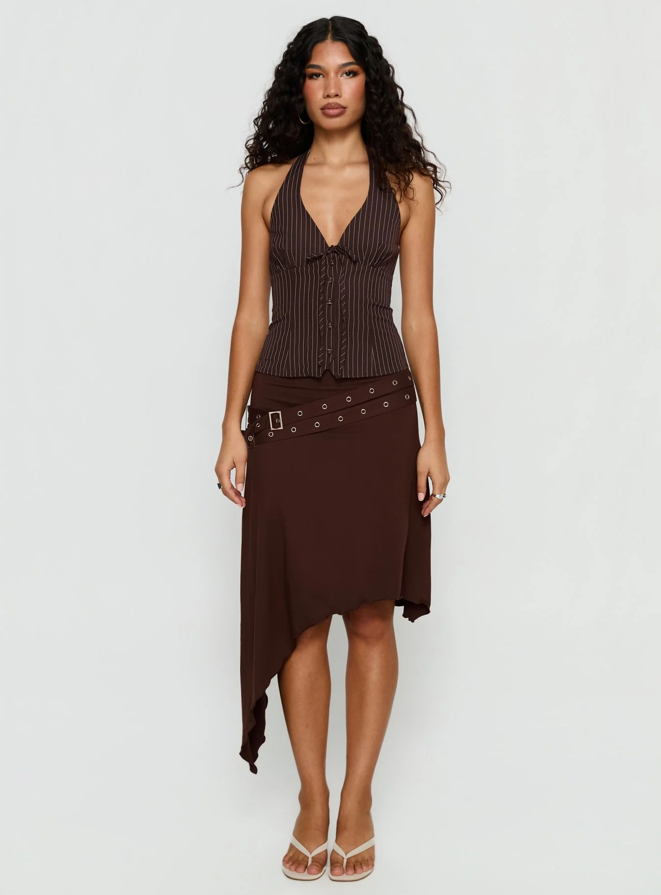 Lorensa Double Buckle Asymmetrical Midi Skirt Brown