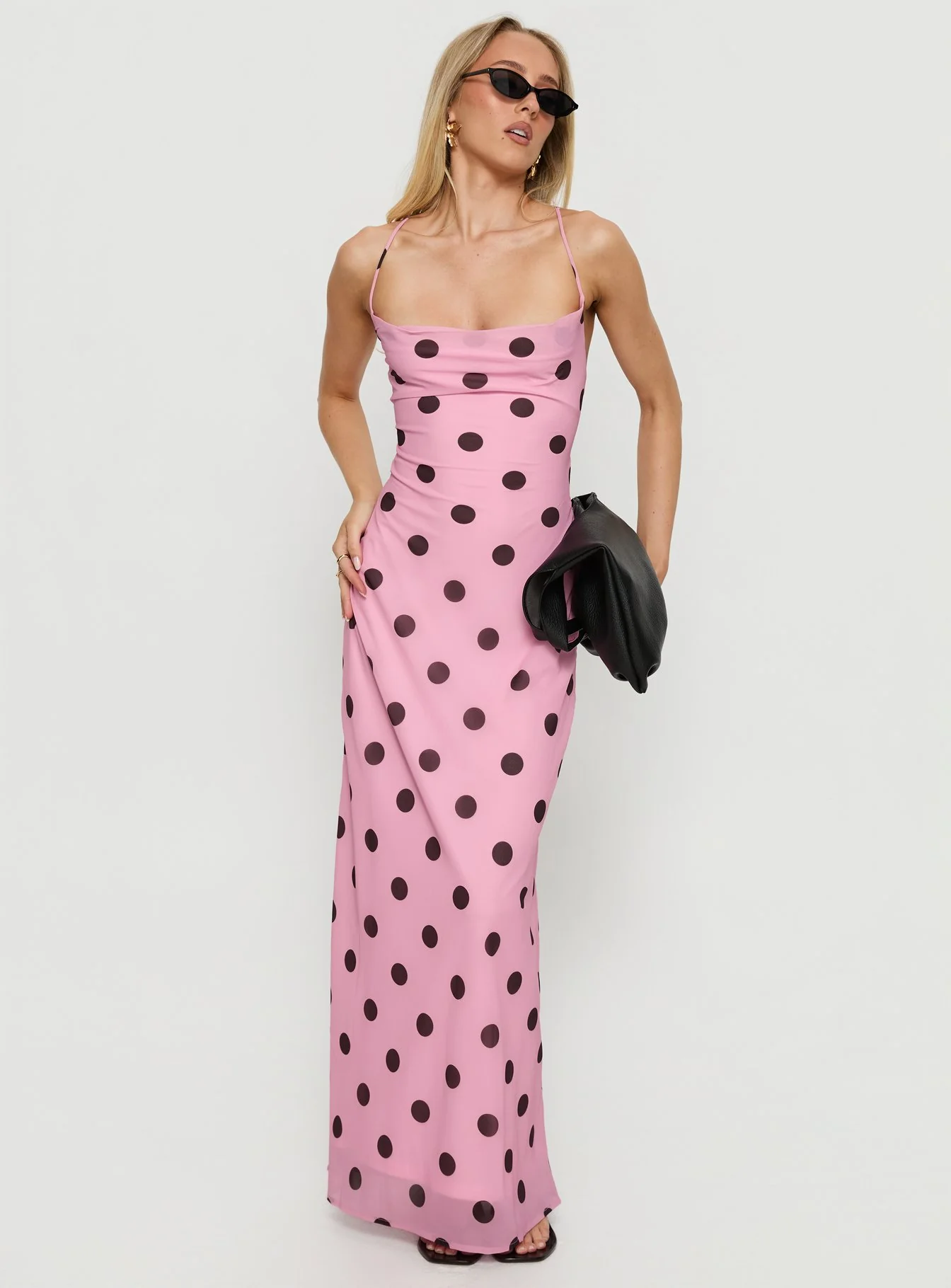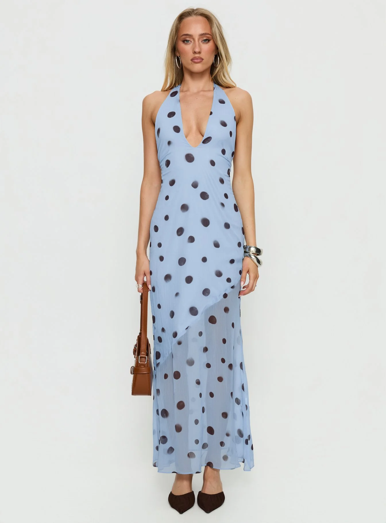 Oralee Halter Sheer Maxi Dress Blue / Polka Dot