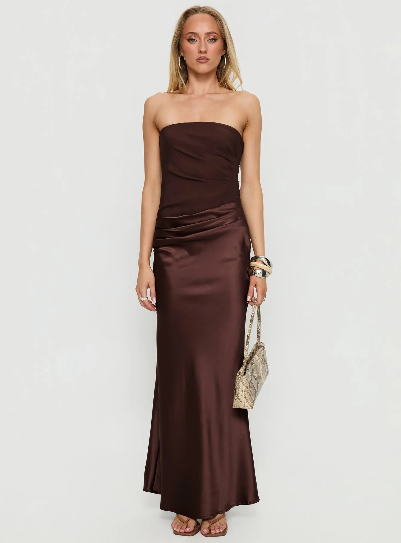 Sydni scarf detail strapless top Yellow / Chocolate polka