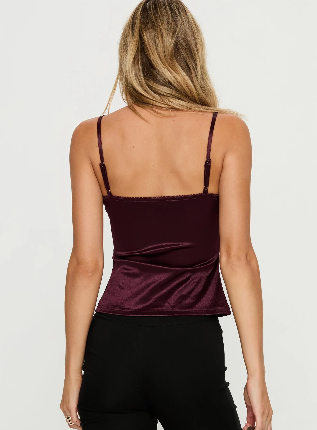 Lunetta Picot Trim Cami Top Burgundy