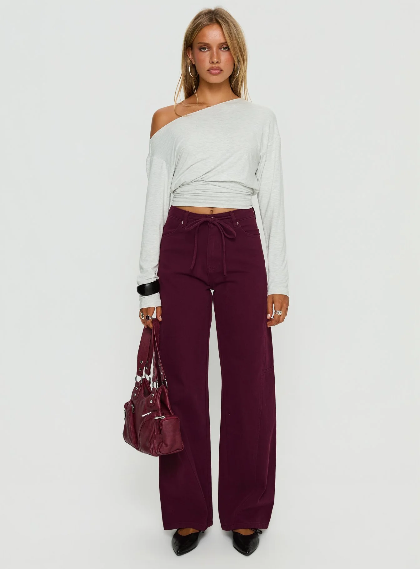 Bruiser Tie Waist Mid Rise Wide Leg Jeans Currant