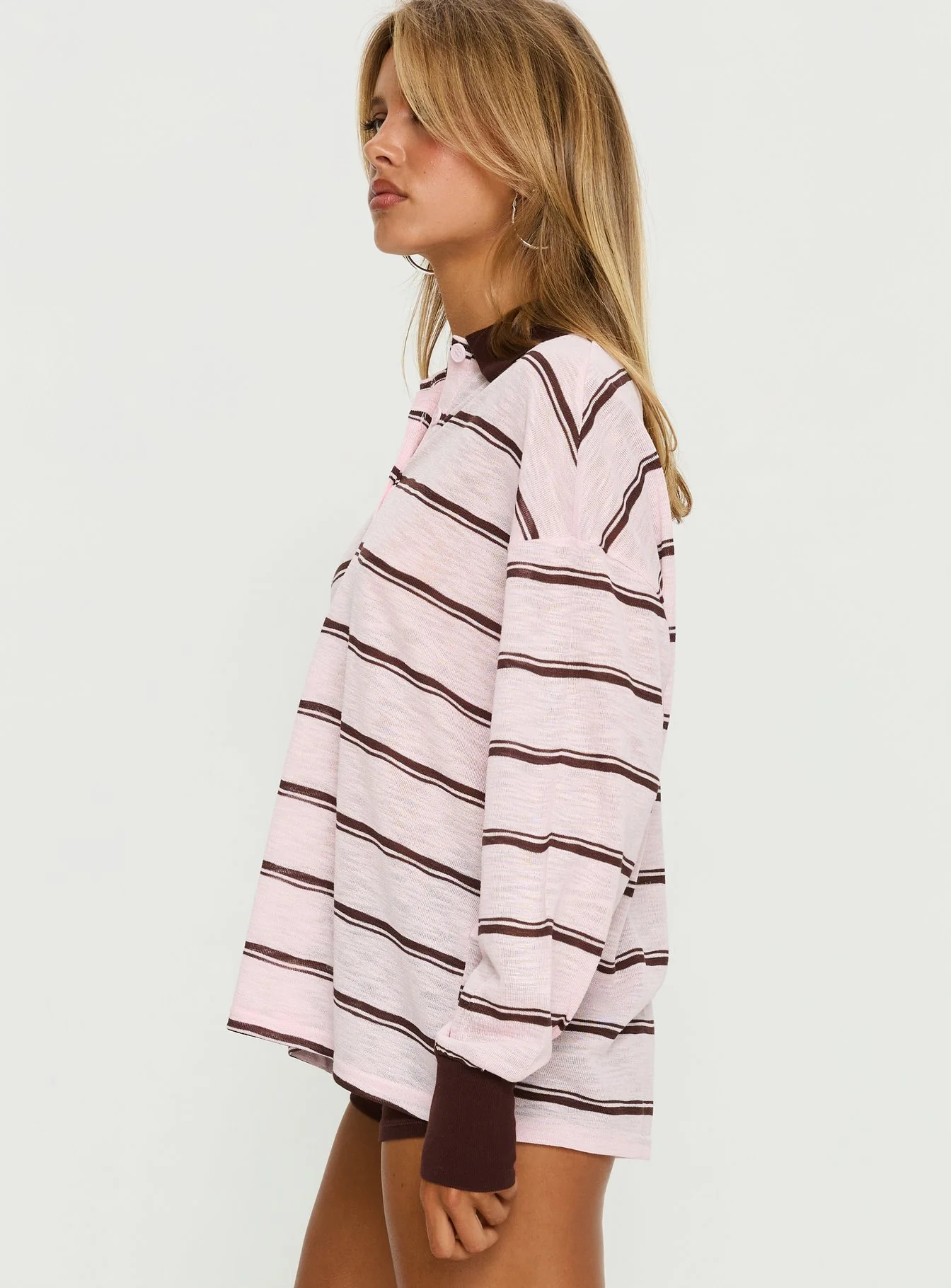Aleka Rugby Long Sleeve Jersey Pink / Brown Stripe