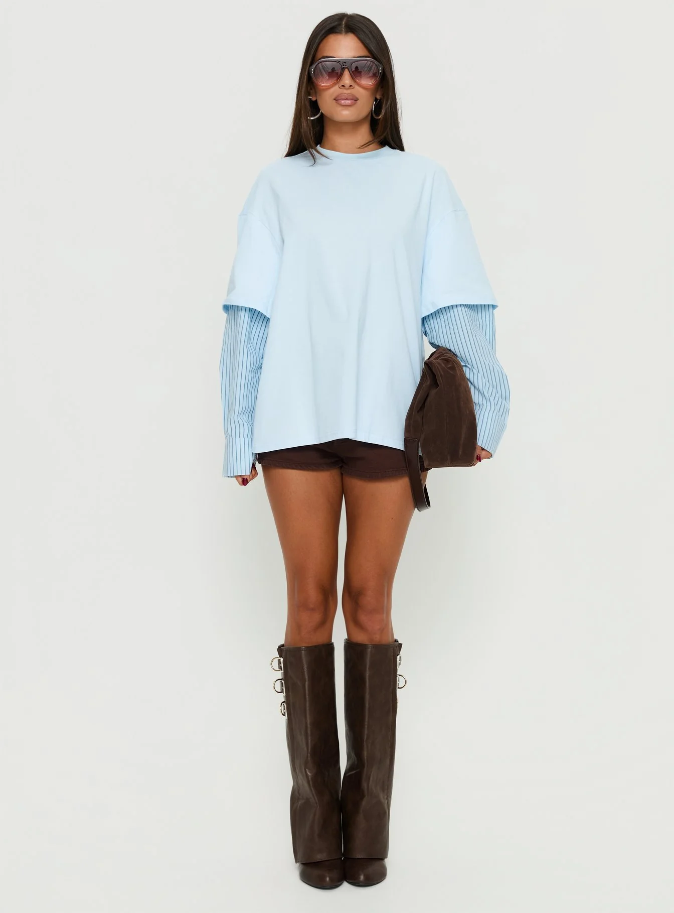 Cozy Hour Sleep Relaxed Off Shoulder Top Navy
