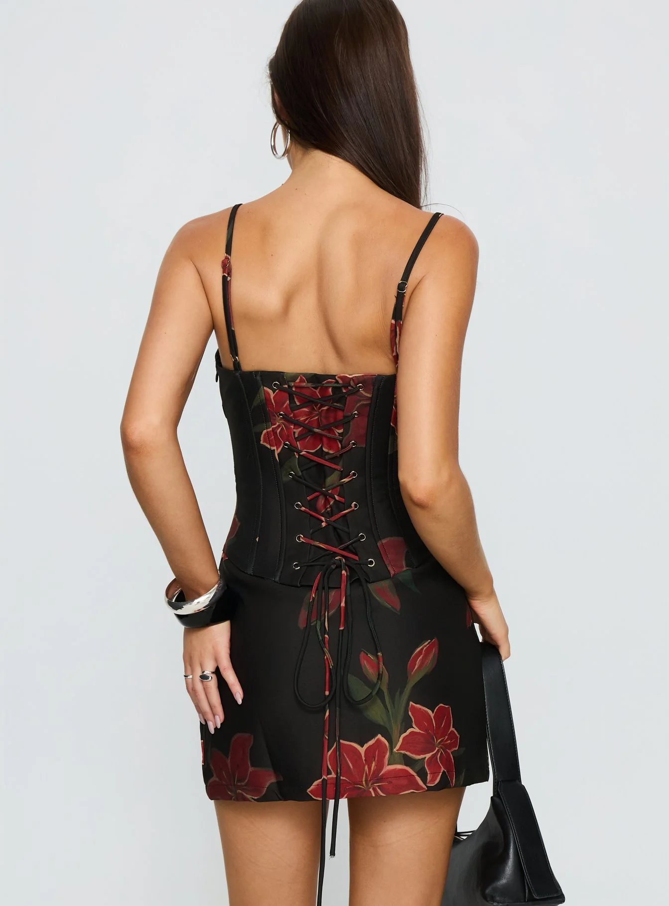 Dionna Long Sleeve Contrast Bust Mini Dress Black