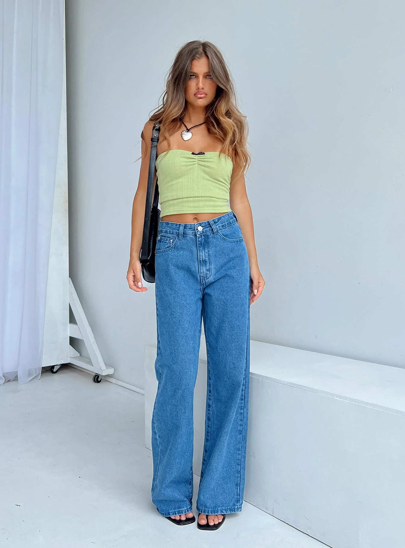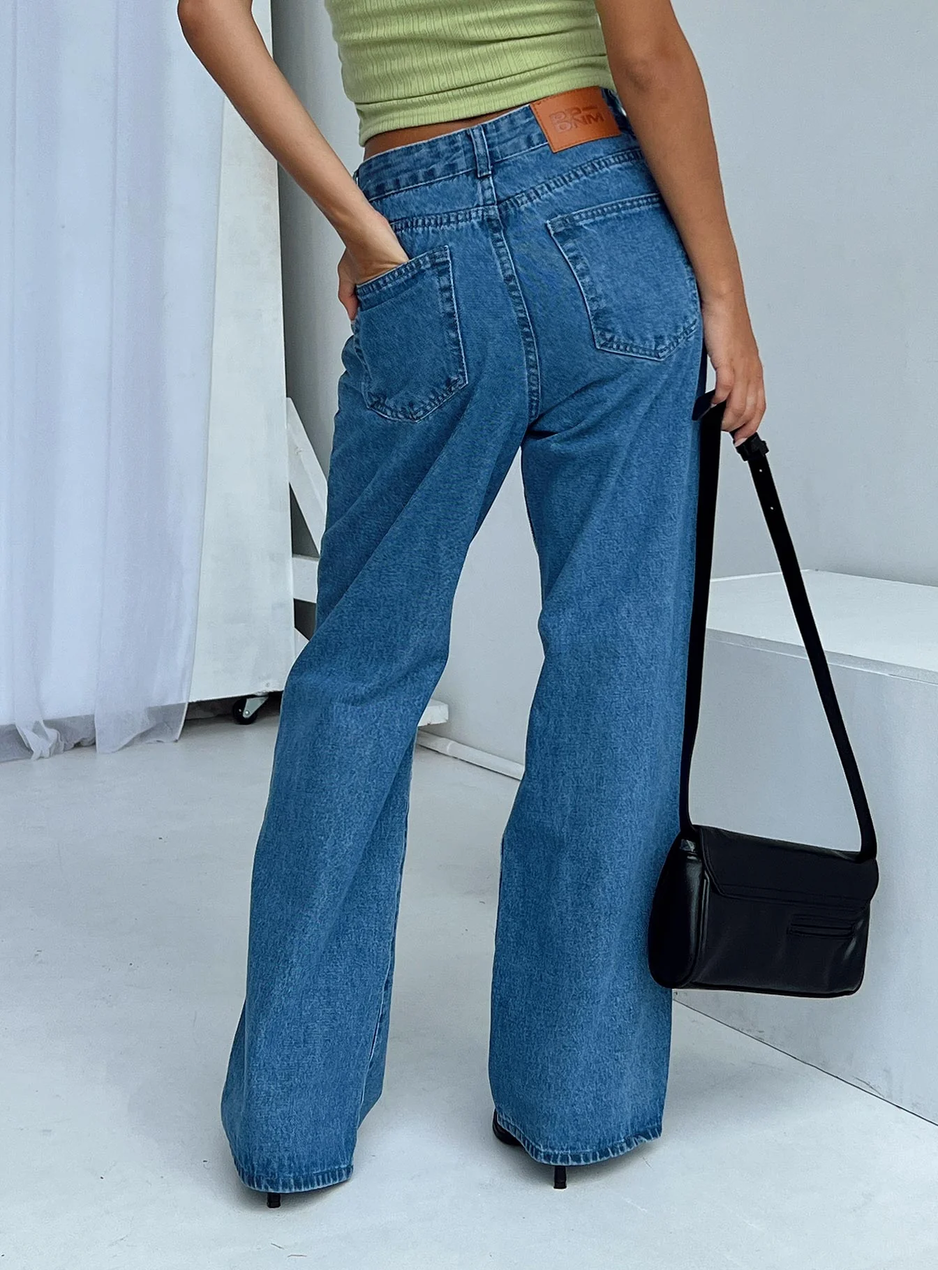 Eugarie Wide Leg Jeans Mid Wash Denim