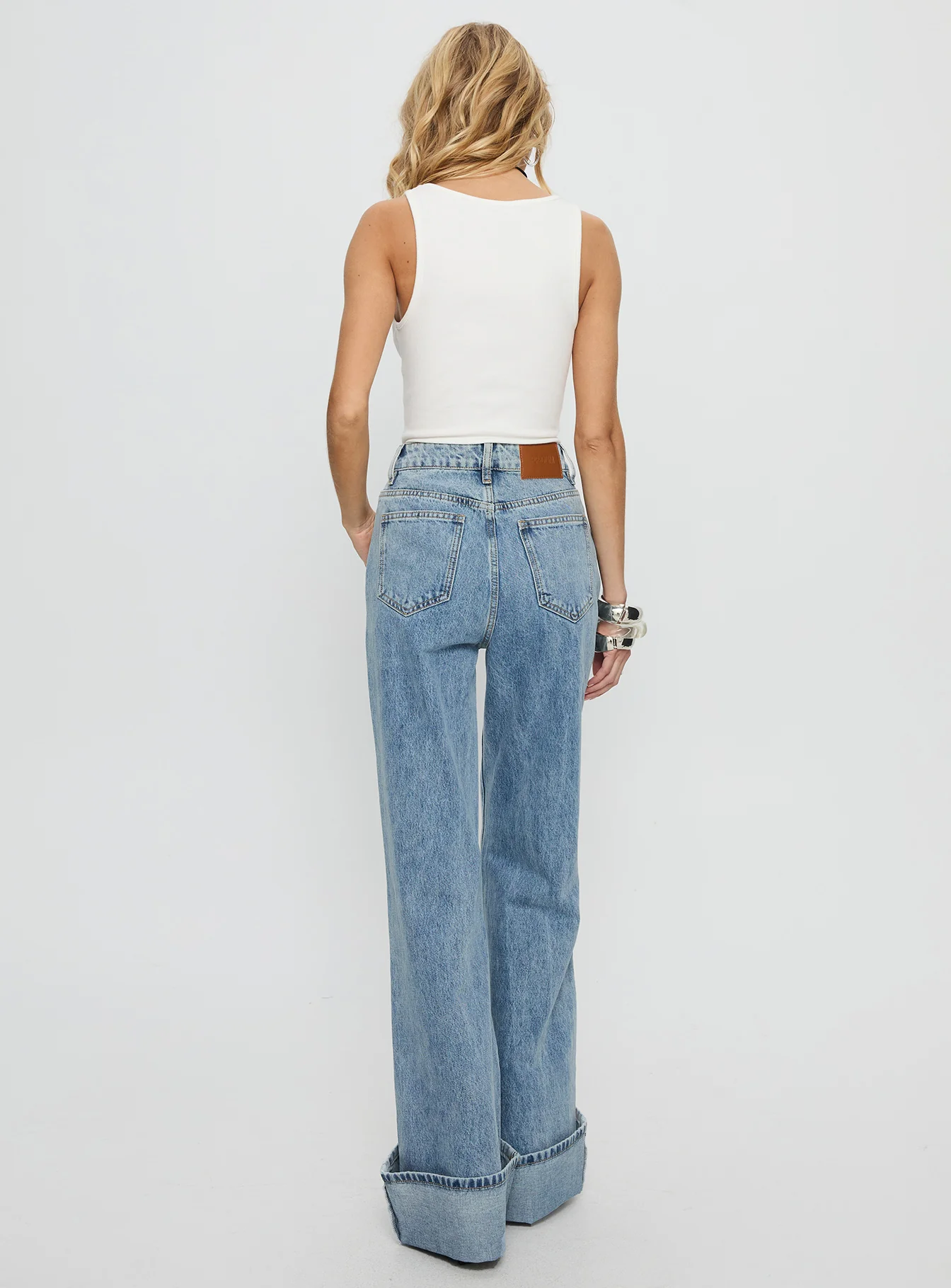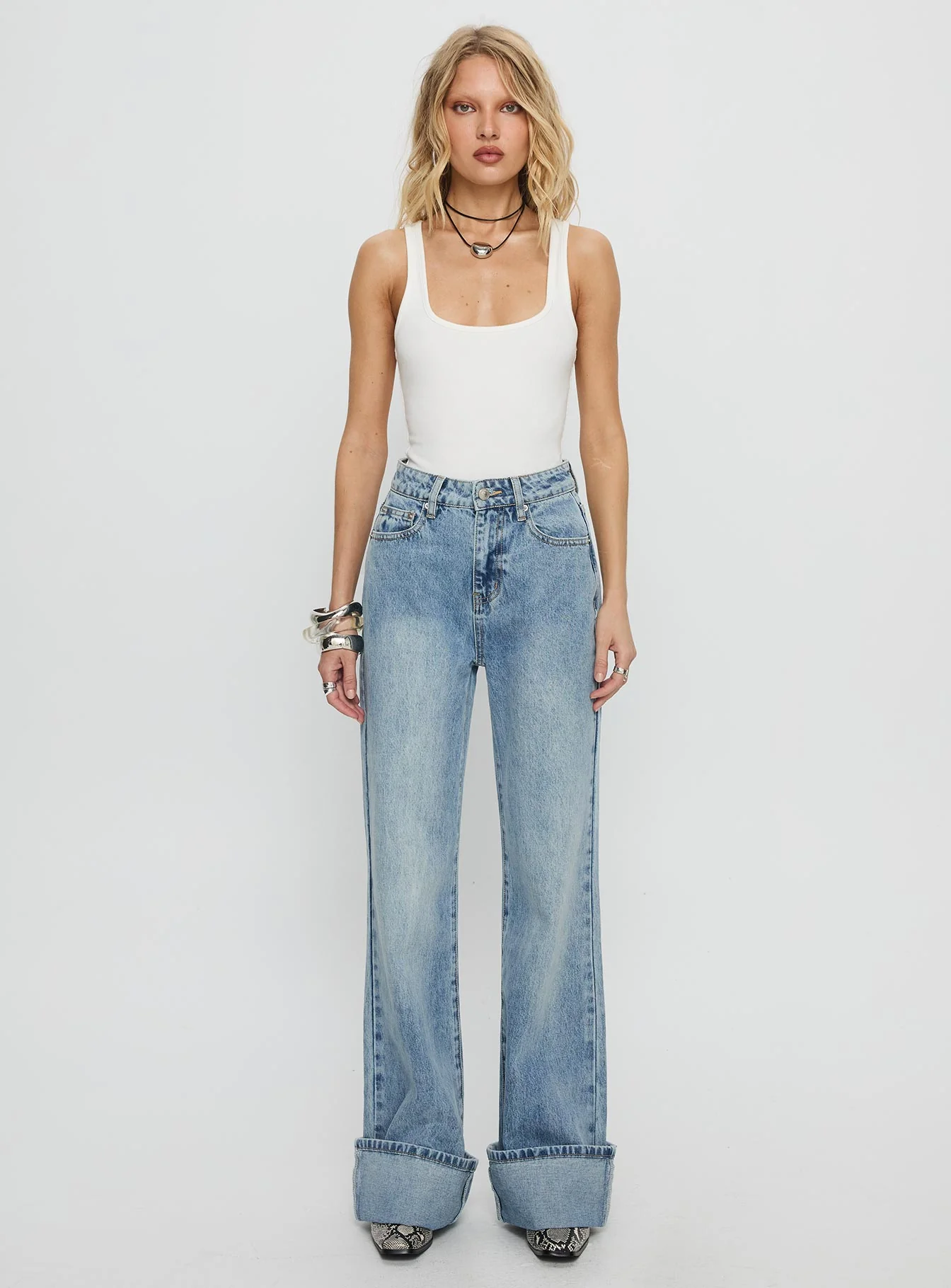 Florida Keys Mid Rise Straight Leg Cuffed Jeans Light Blue Wash