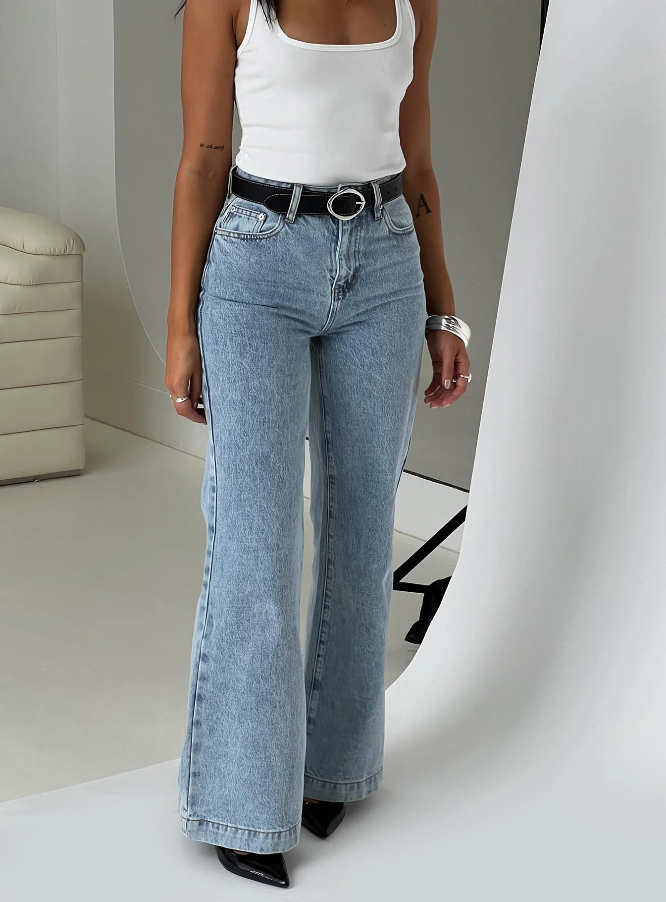 Lando Low Rise Straight Leg Jeans Mid Blue Wash