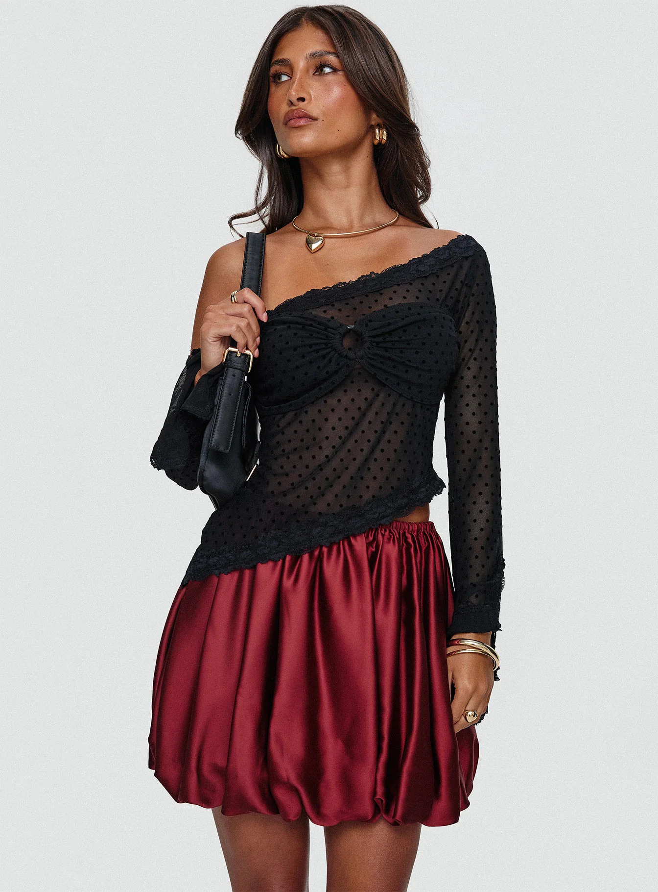 Rubee Bubble Hem Mini Skirt Red