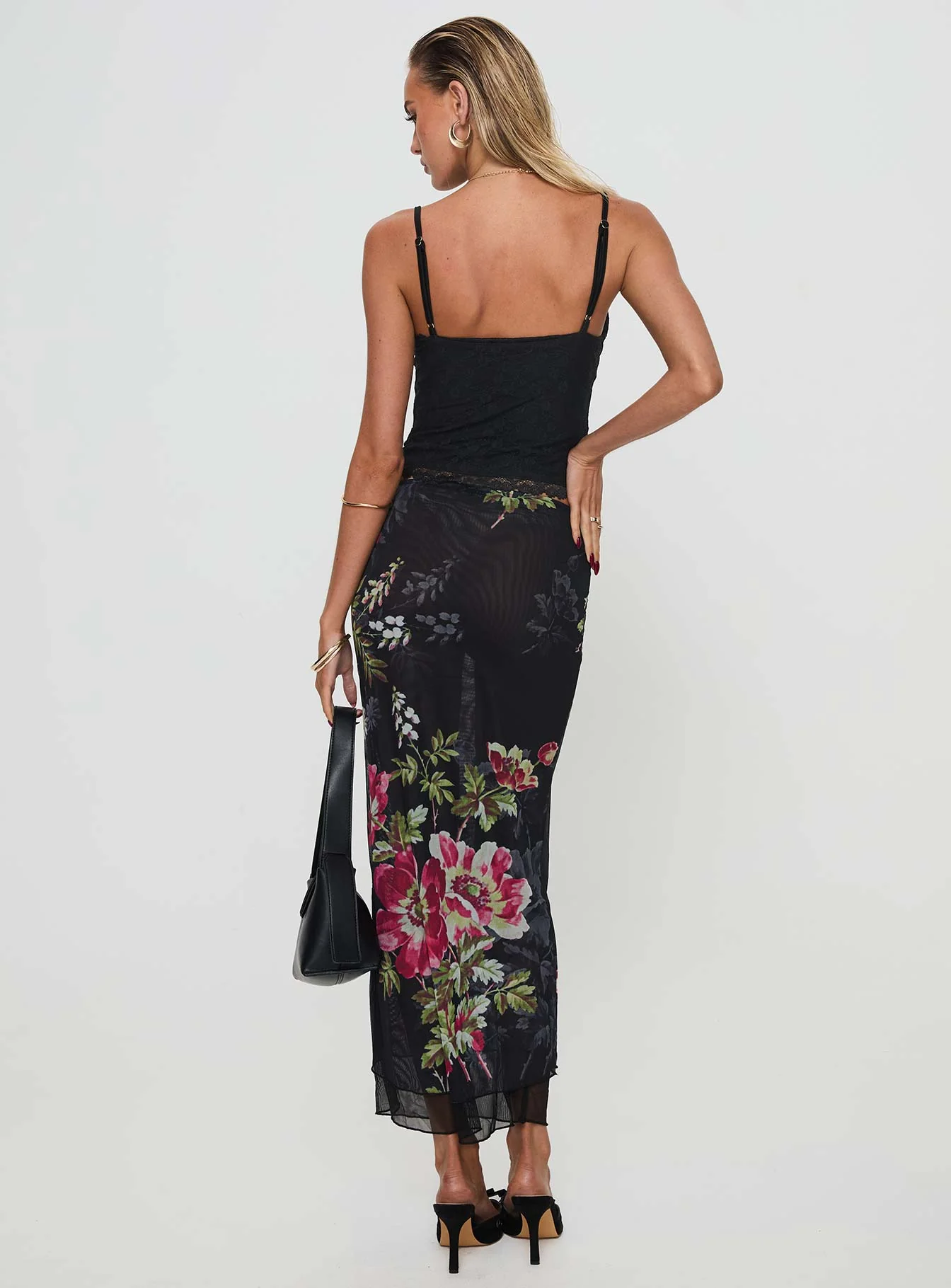 Paganio Maxi Skirt Black Floral