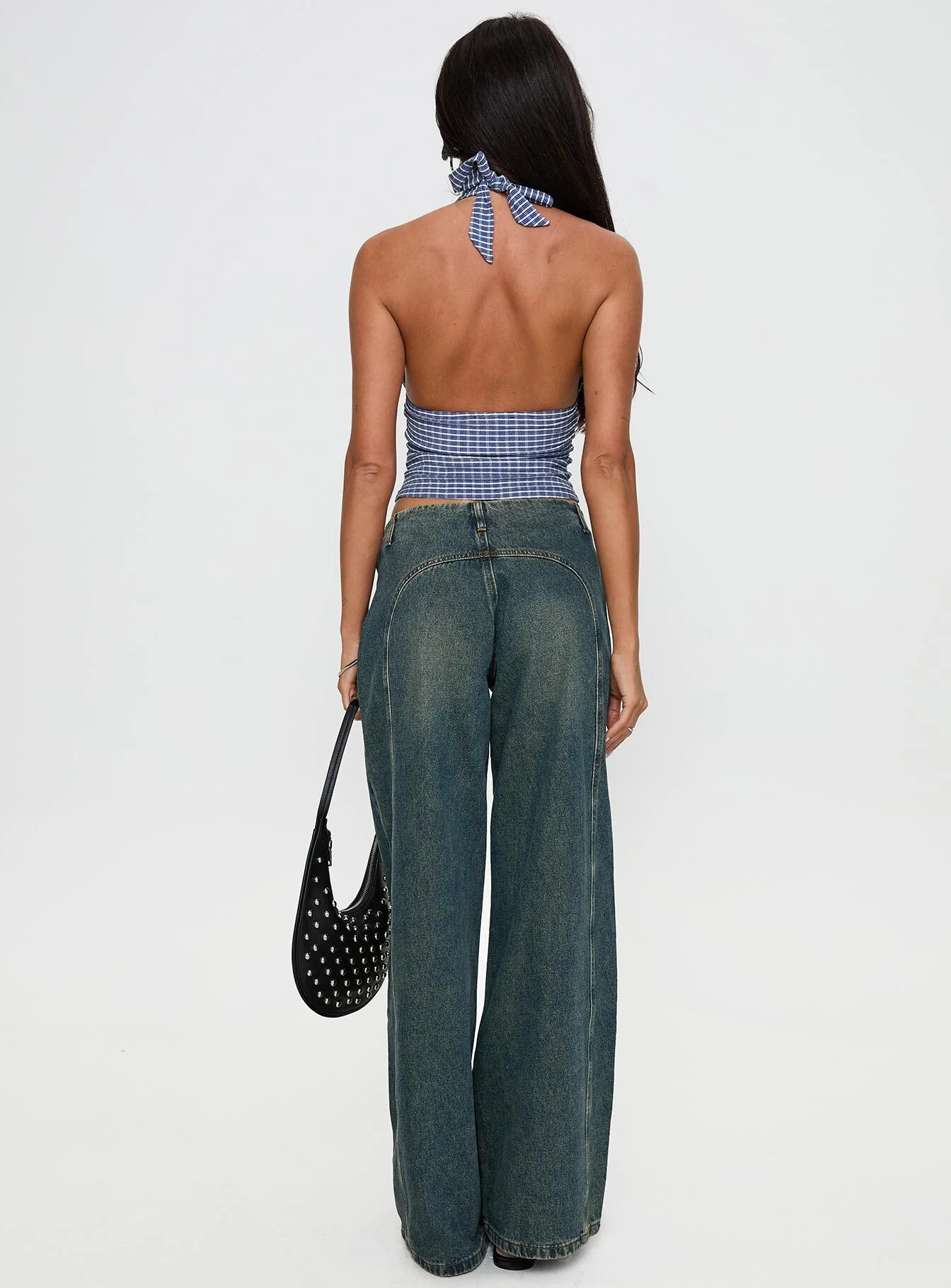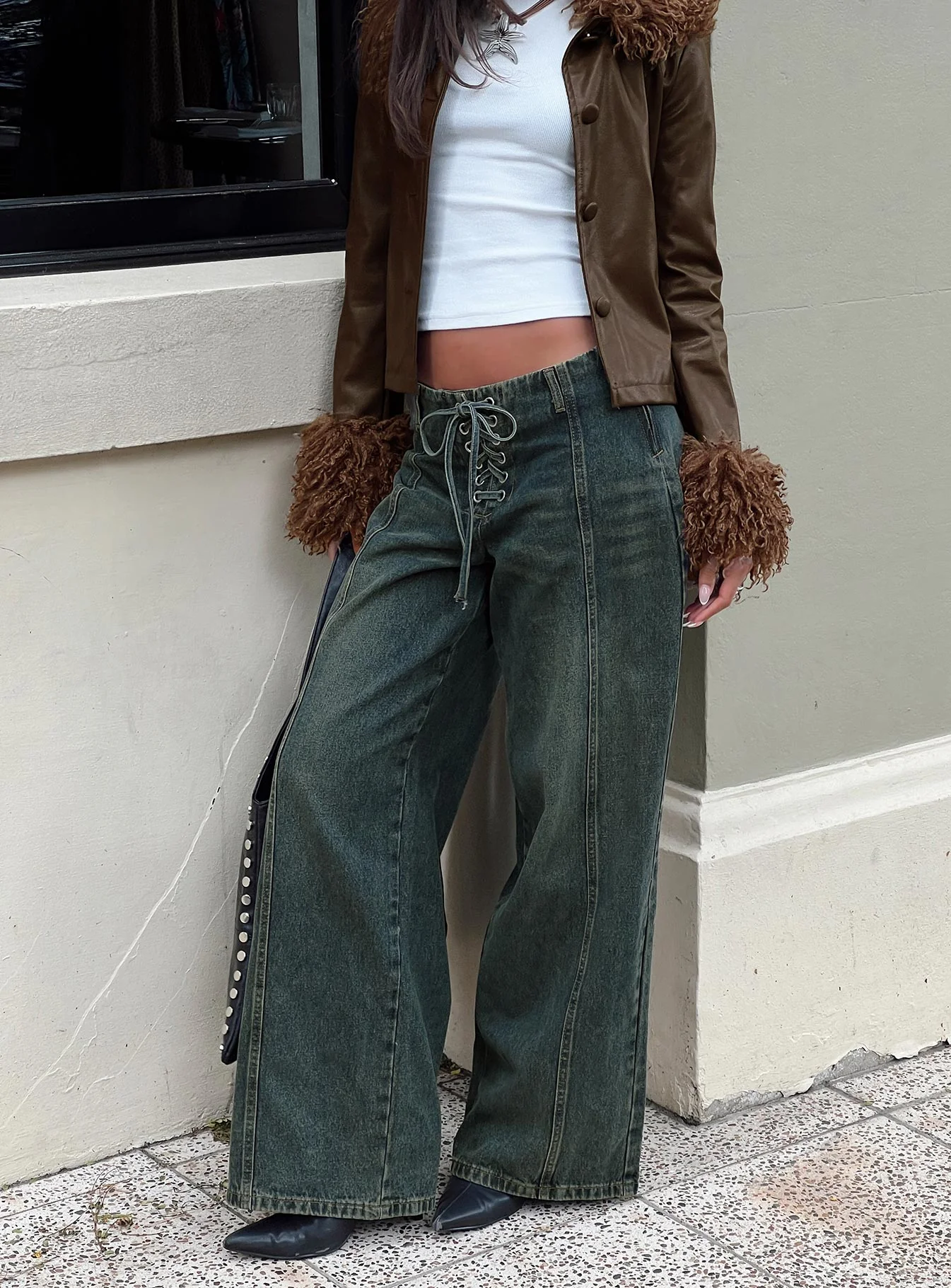 San Mateo Low Rise Wide Leg Tie Up Jeans Vintage Wash