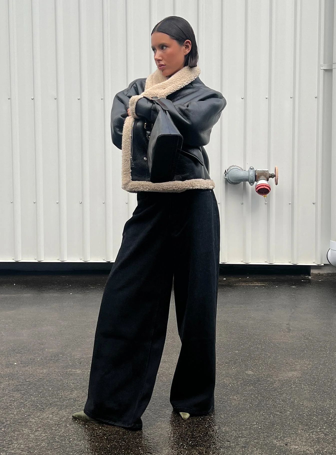 Naylor Mid Rise Wide Leg Jeans Washed Black Tall