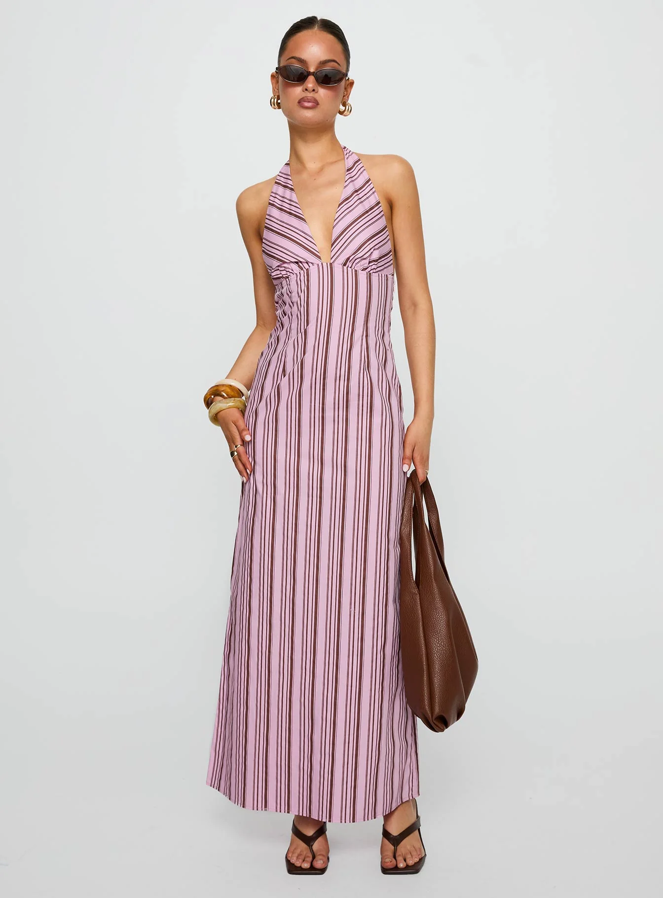 Avrie Halter Maxi Dress Pink / Brown Stripe