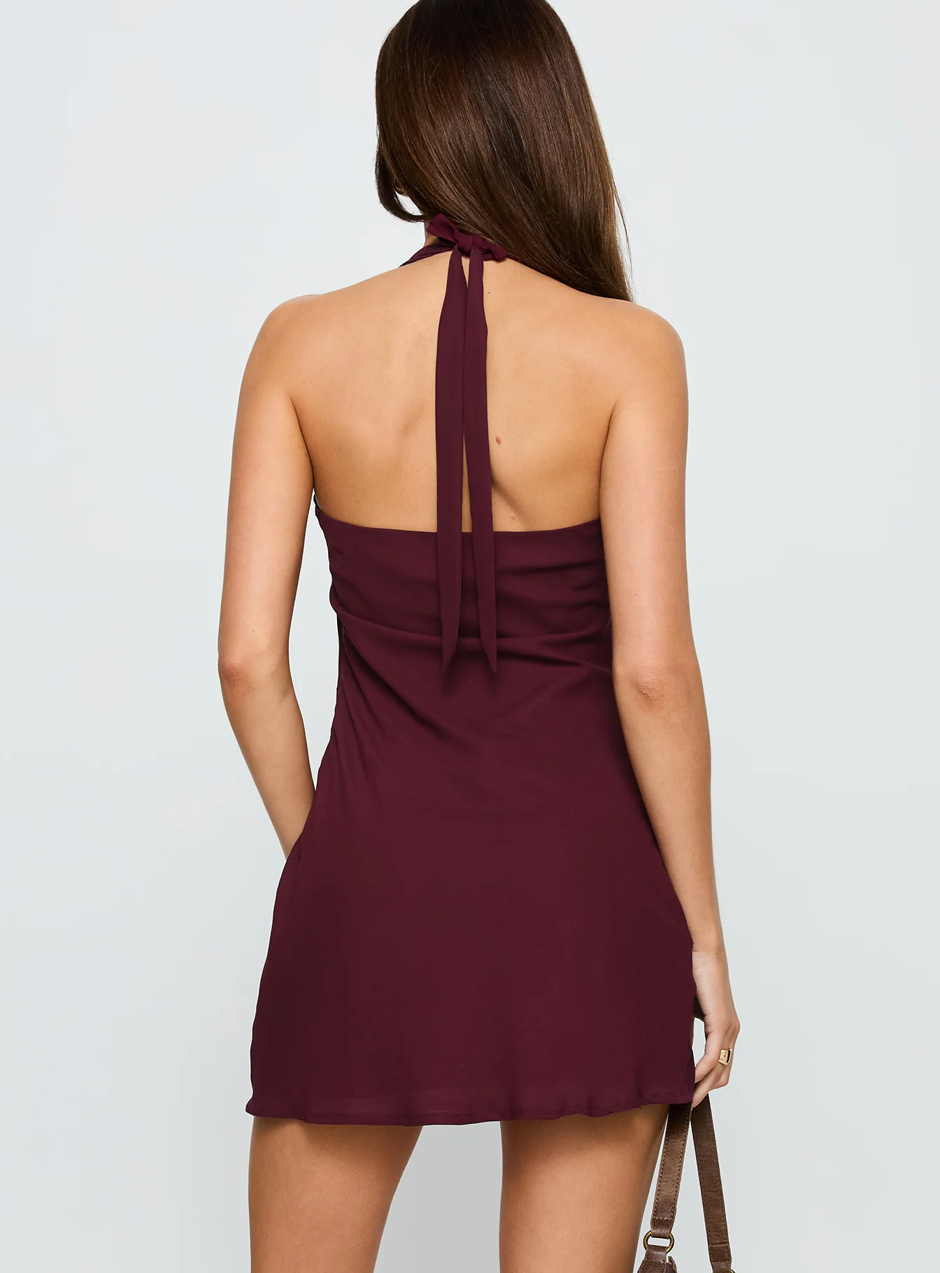 Ocean Boulevard Plunge Mini Dress Currant