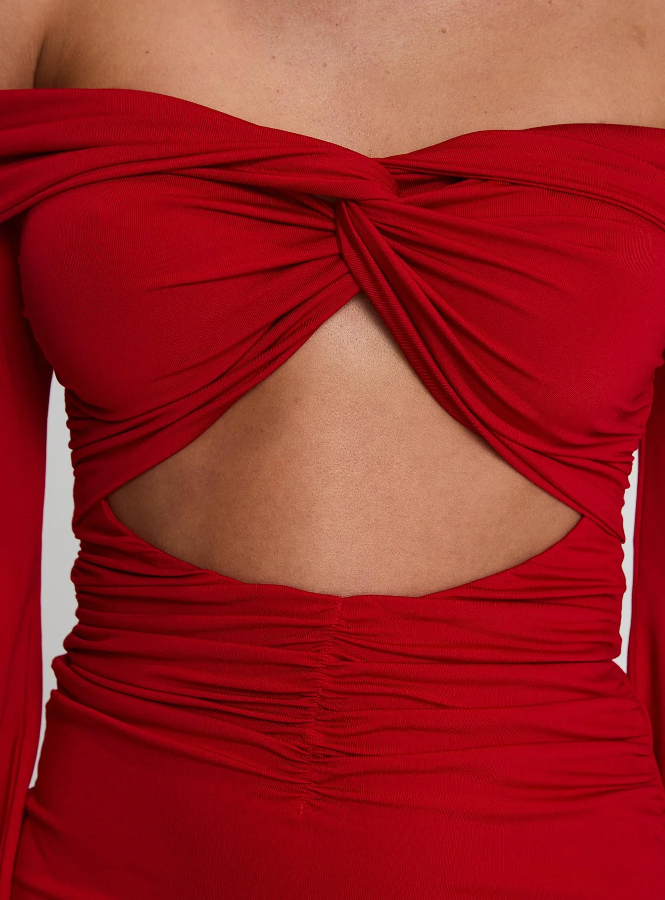 Sandyra Long Sleeve Knit Mini Dress Maroon