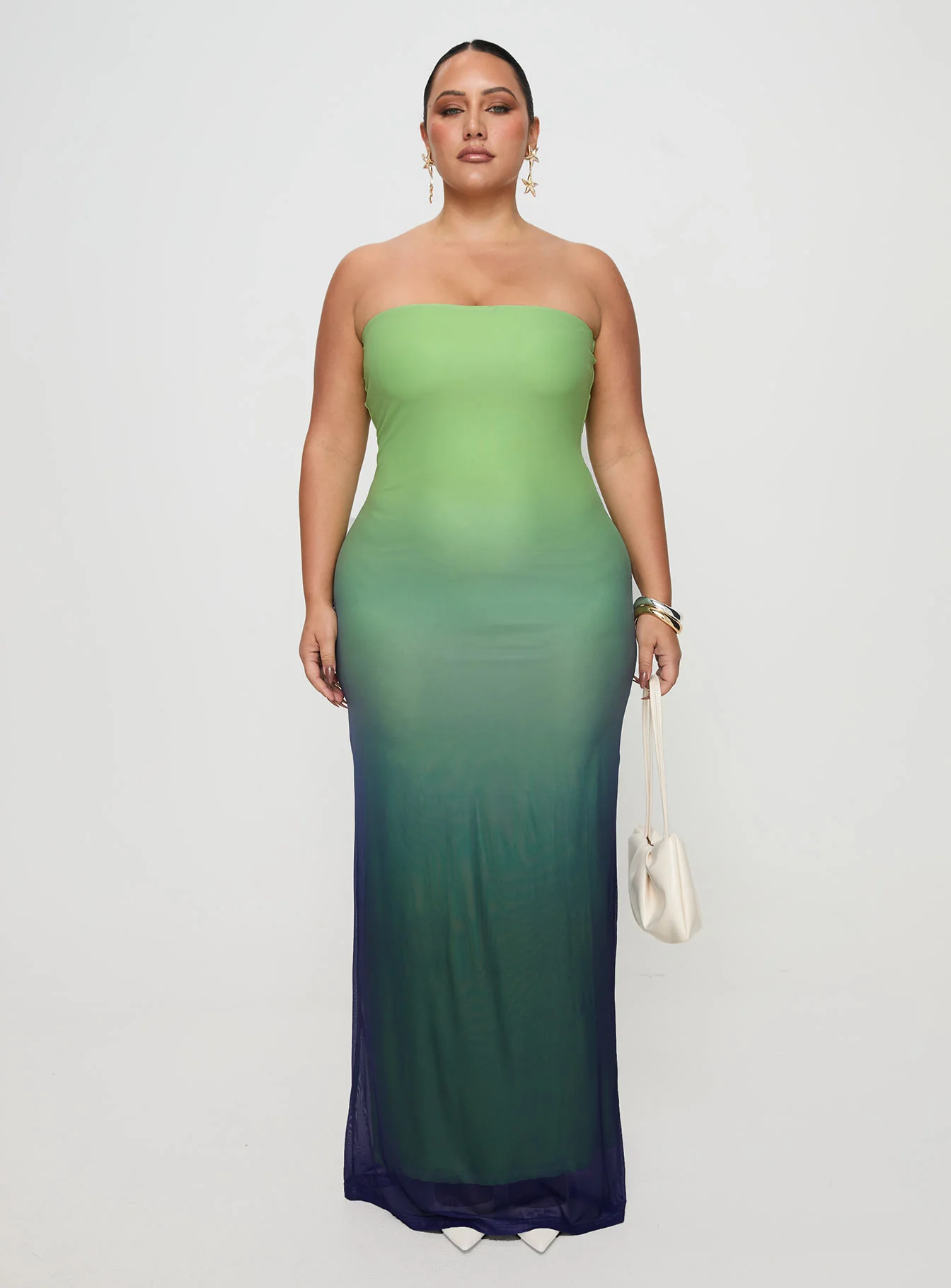 Stolen Love Strapless Maxi Dress Blue / Green Ombre Curve