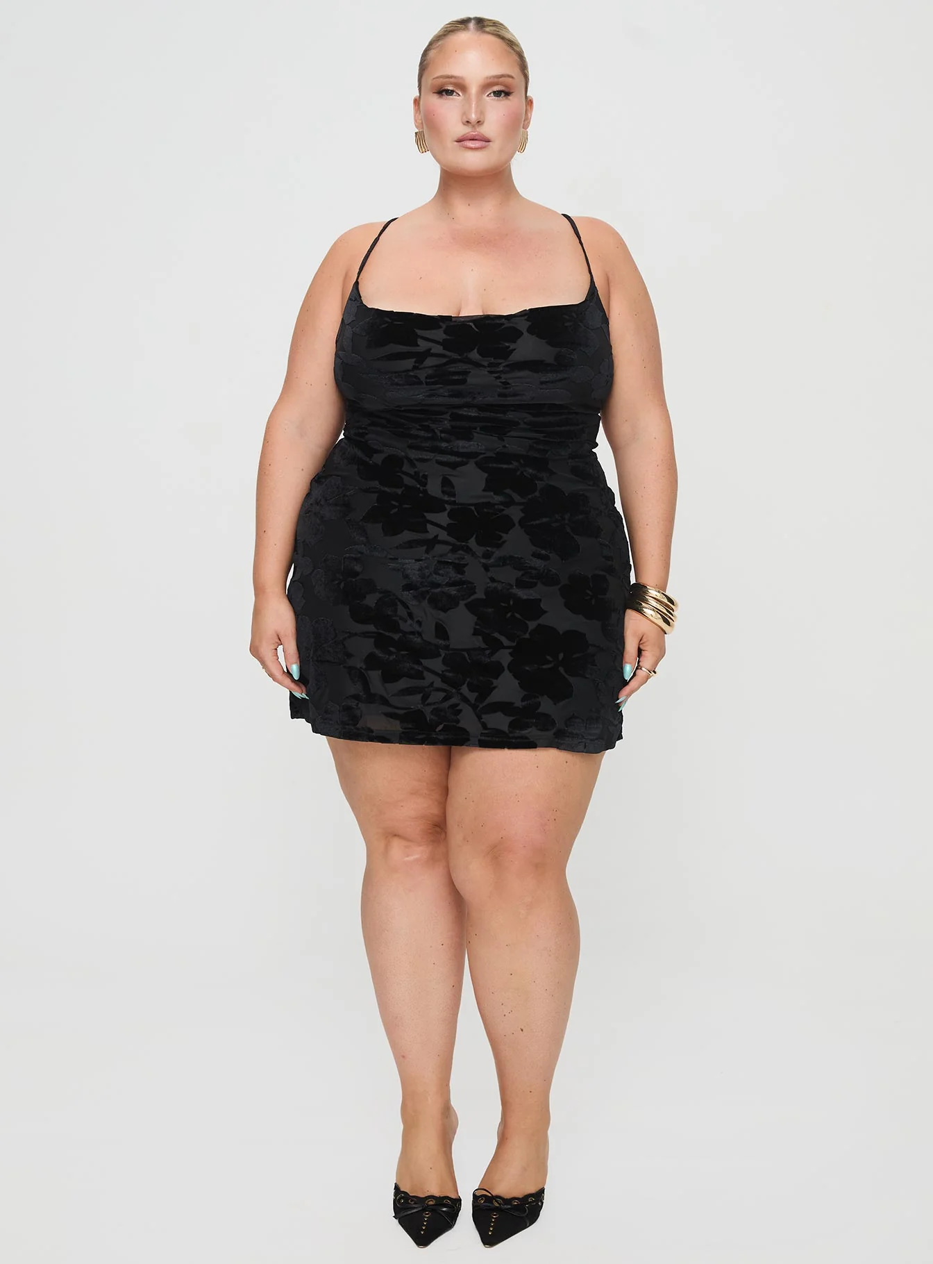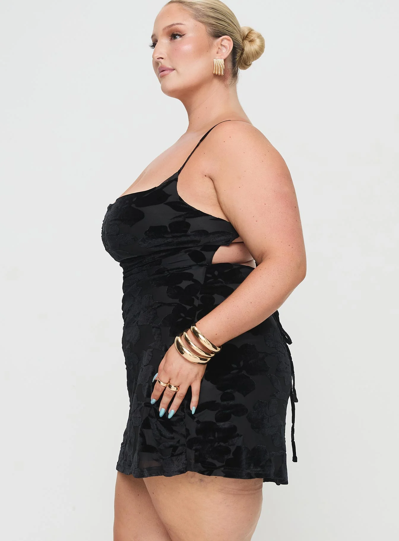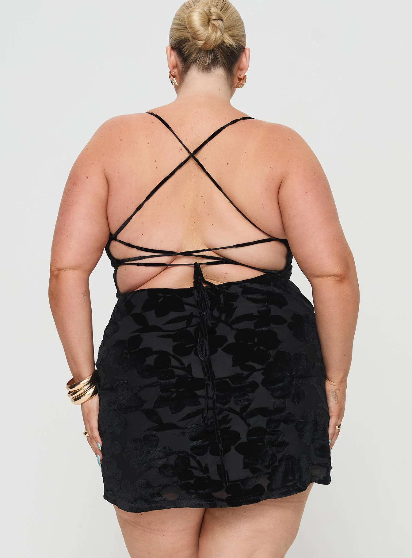 Celena Mini Dress Burn Out Black Curve