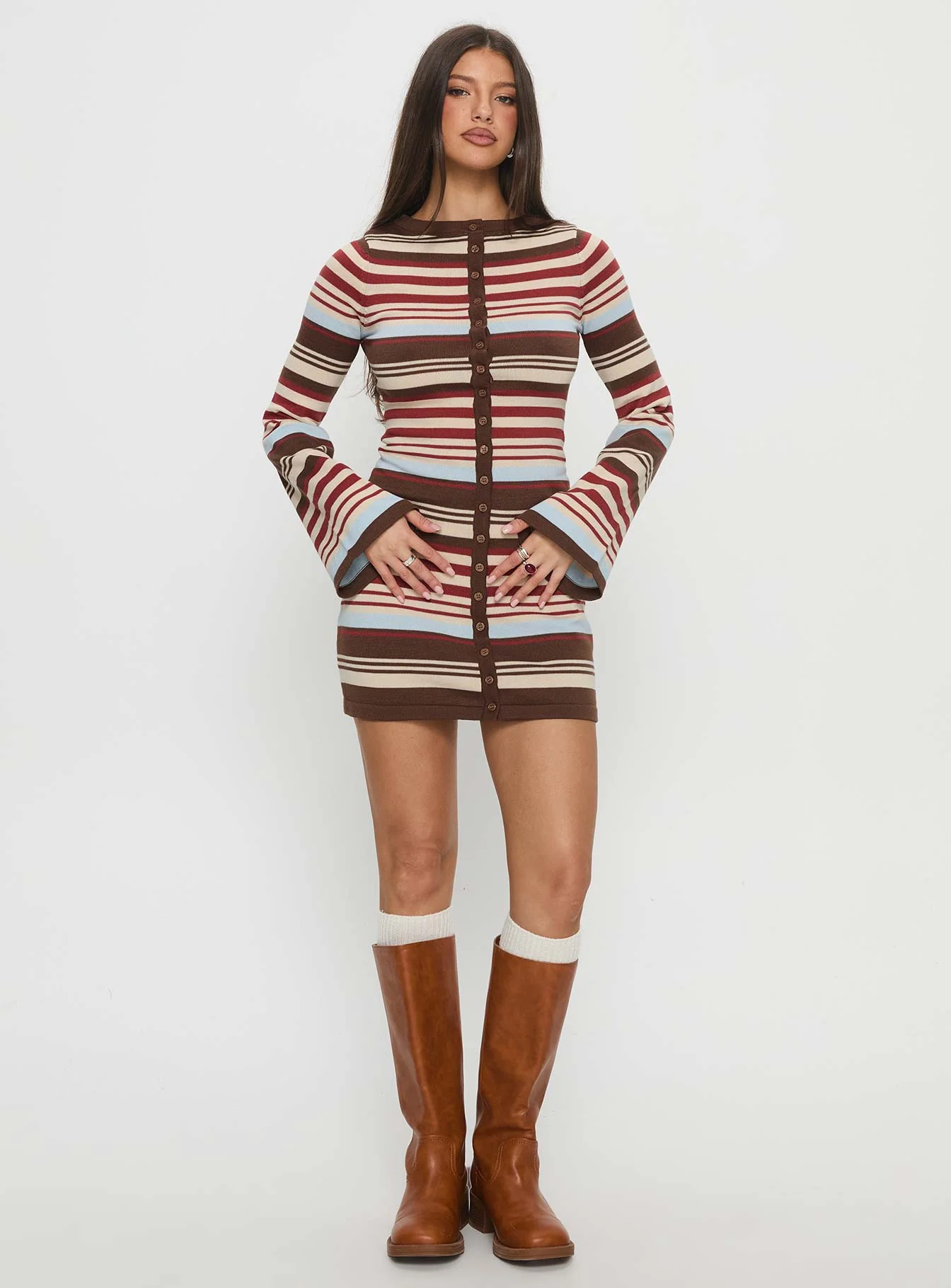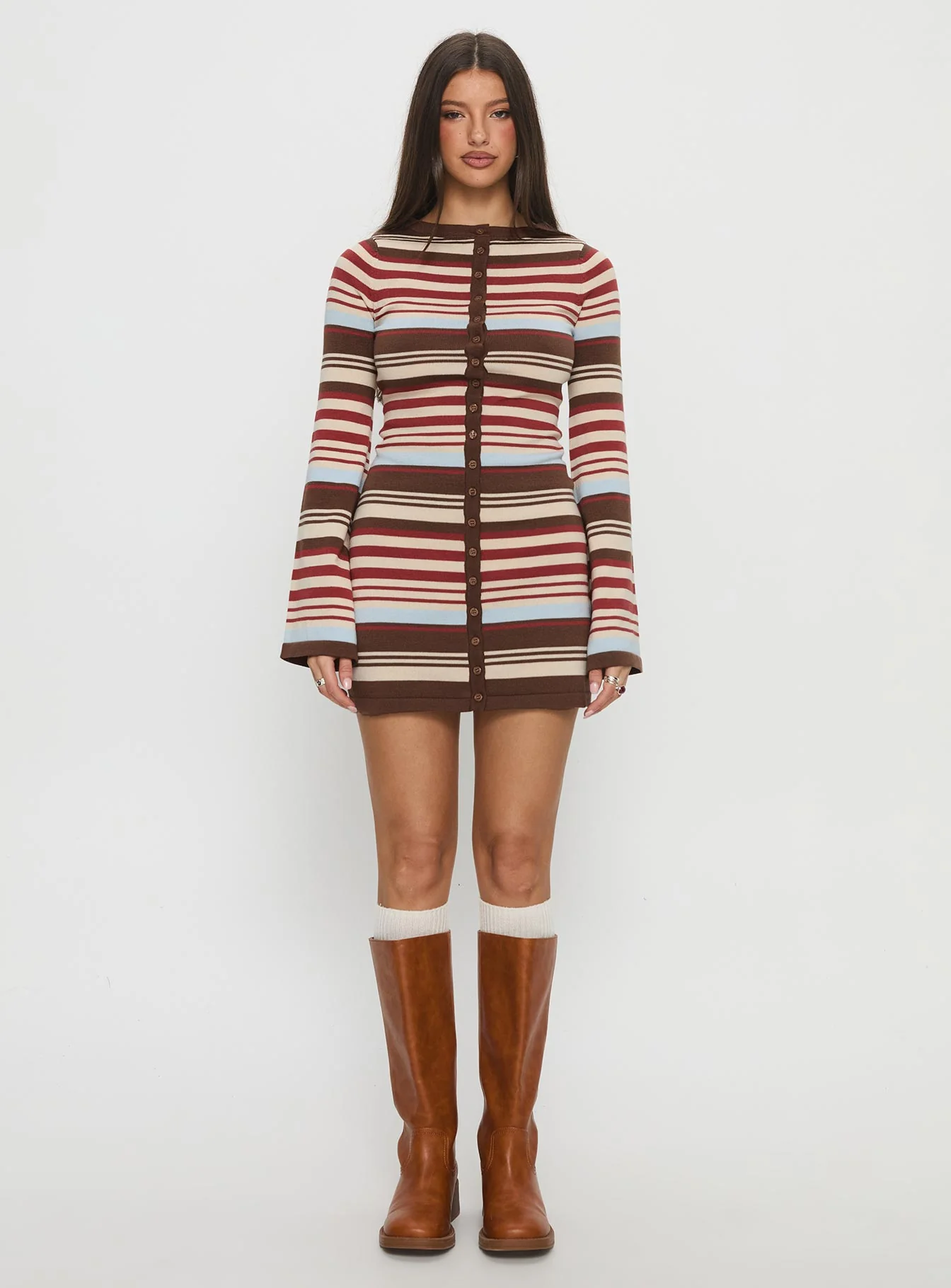 Norelai Long Sleeve Knit Mini Dress Multi Stripe