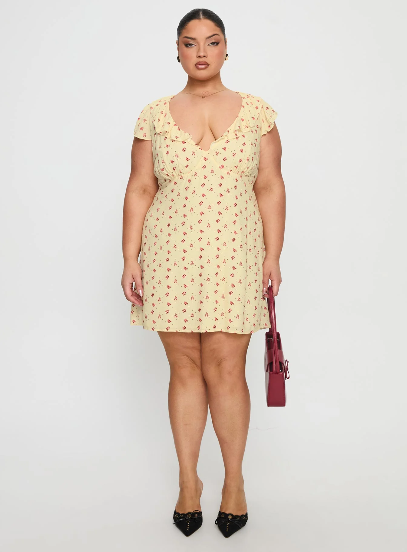 Just Me And You Frill Mini Dress Yellow Floral Curve