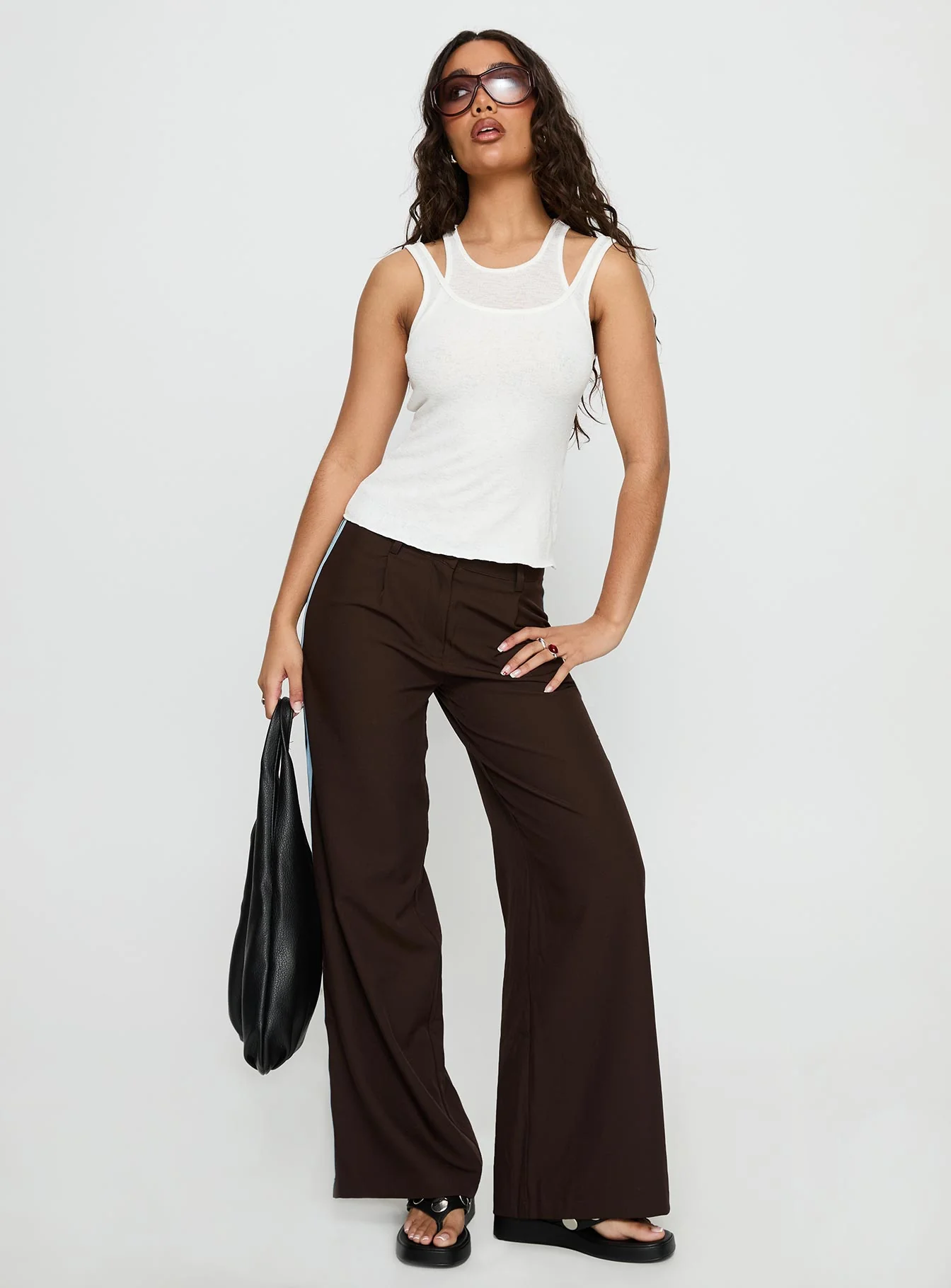 Past Life Fold Over Waistband Pant Brown / Stripe