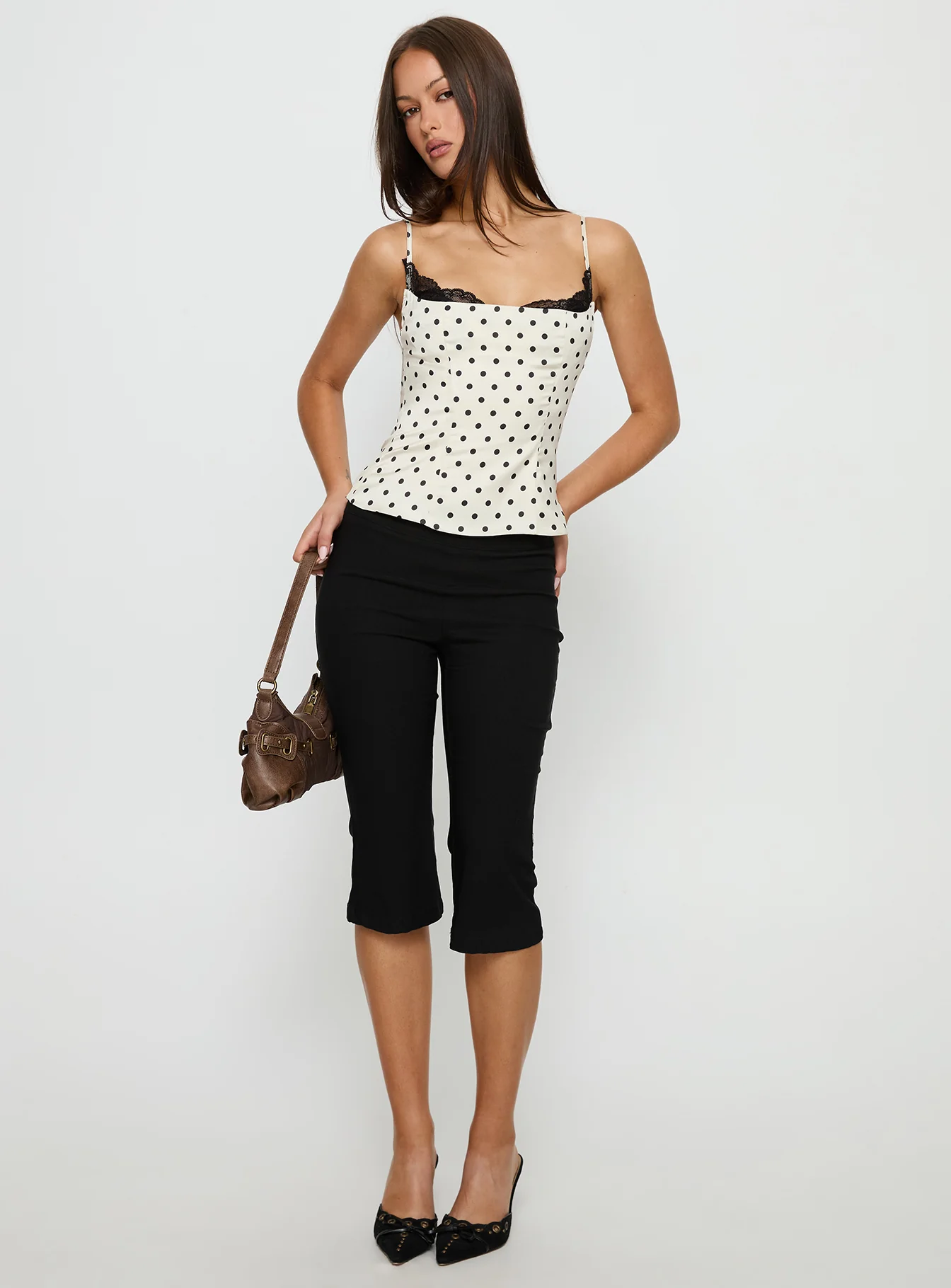 Cassendra Halter Scarf Top Cream Polka Dot