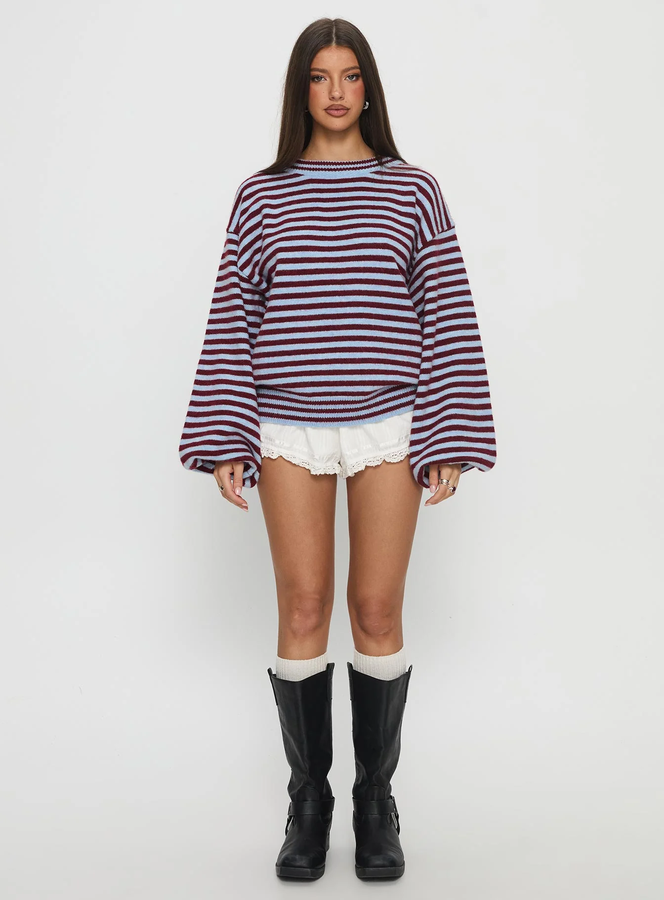 Alvena Off Shoulder Knit Sweater Blue stripe