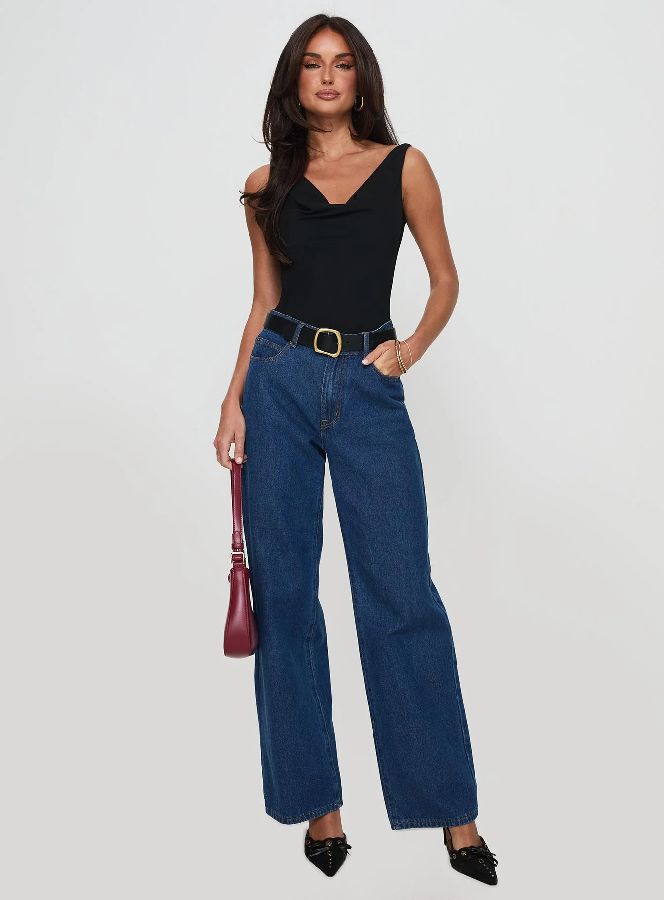 Axton Cowl Neck Bodysuit Black