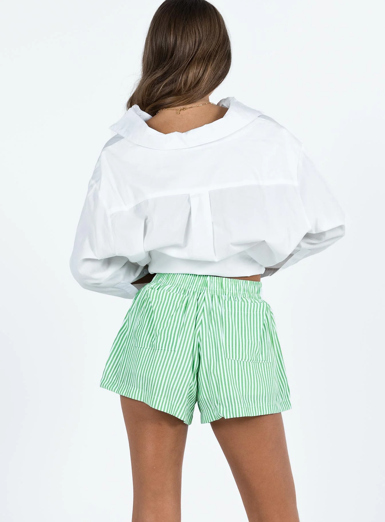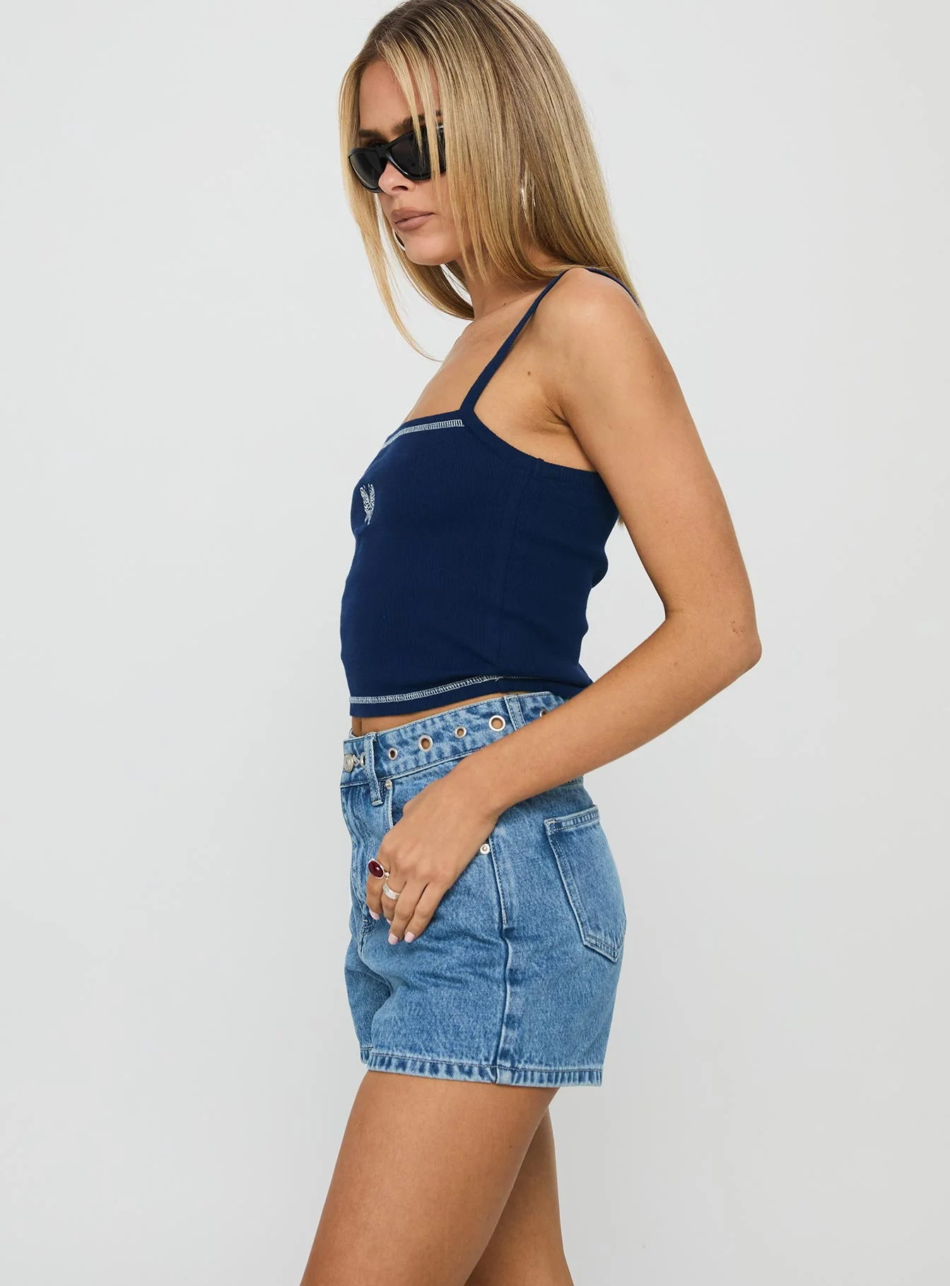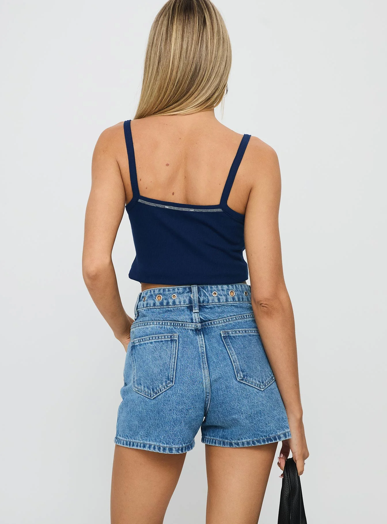 Tropicana Denim Eyelet Detail Shorts Mid Blue