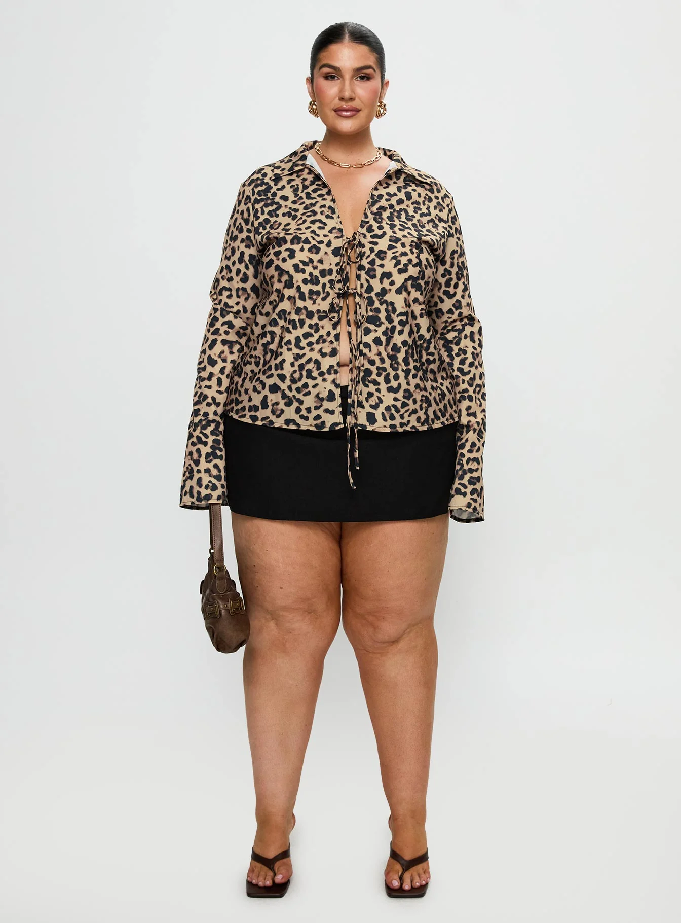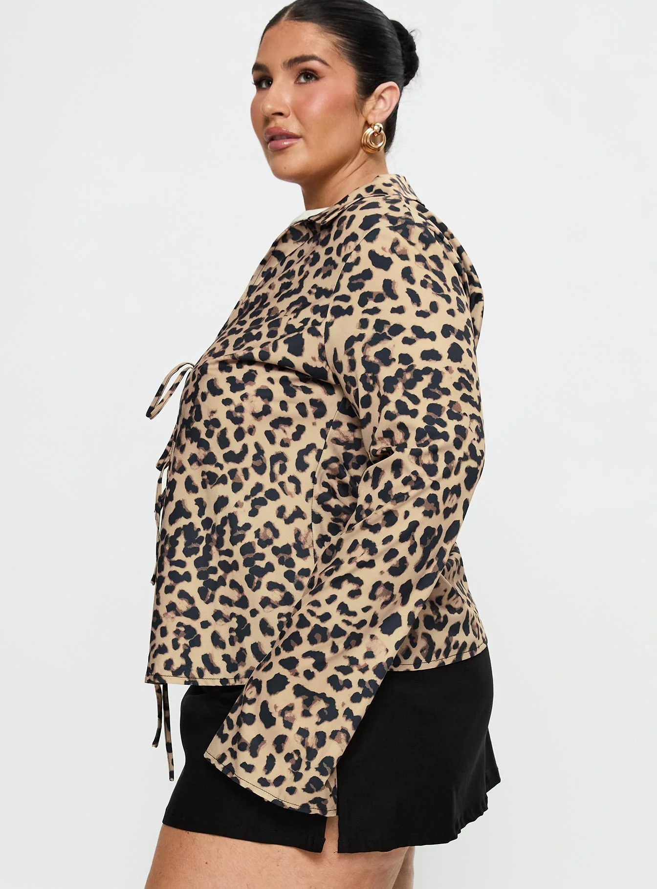 Toriah Long Sleeve Tie Up Top Leopard Curve