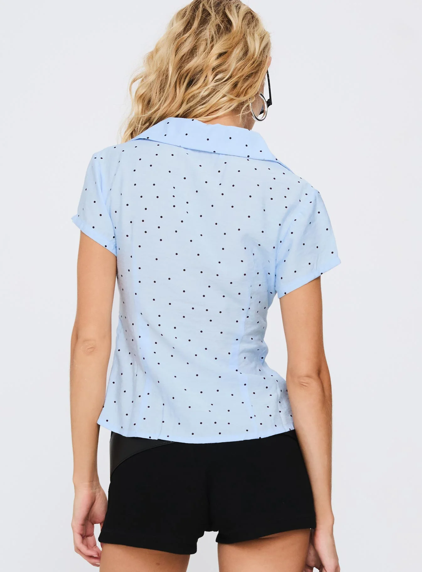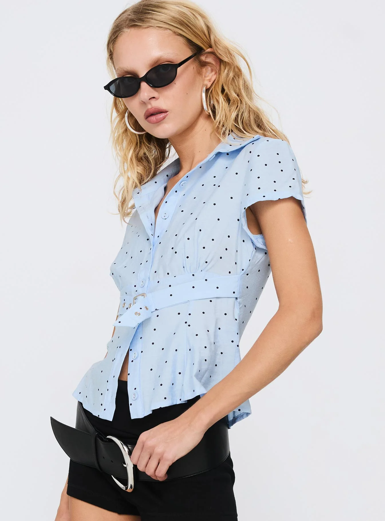 Esteem Buckle Detail Short Sleeve Shirt Blue Polka
