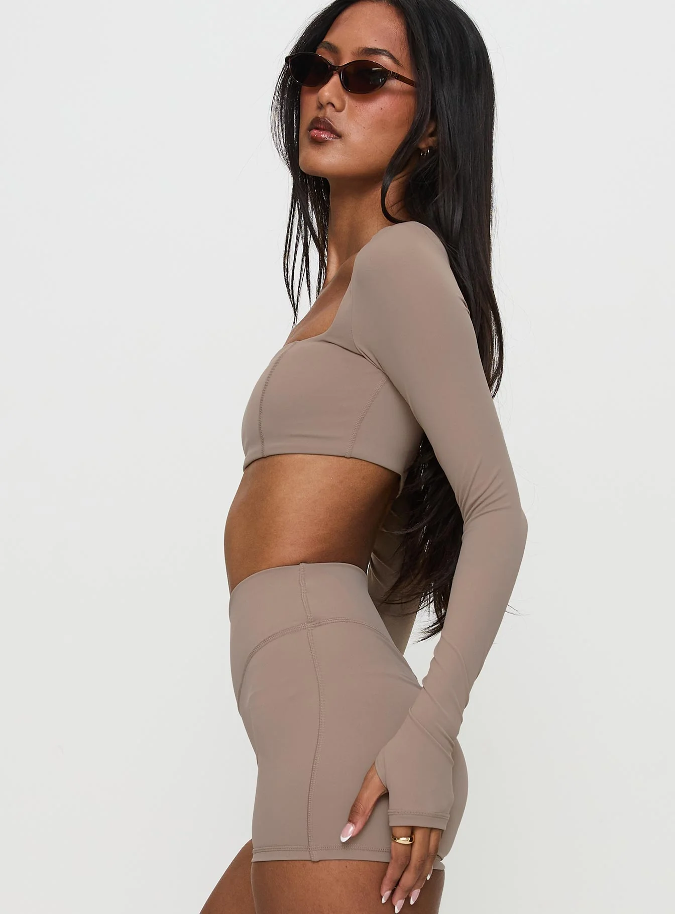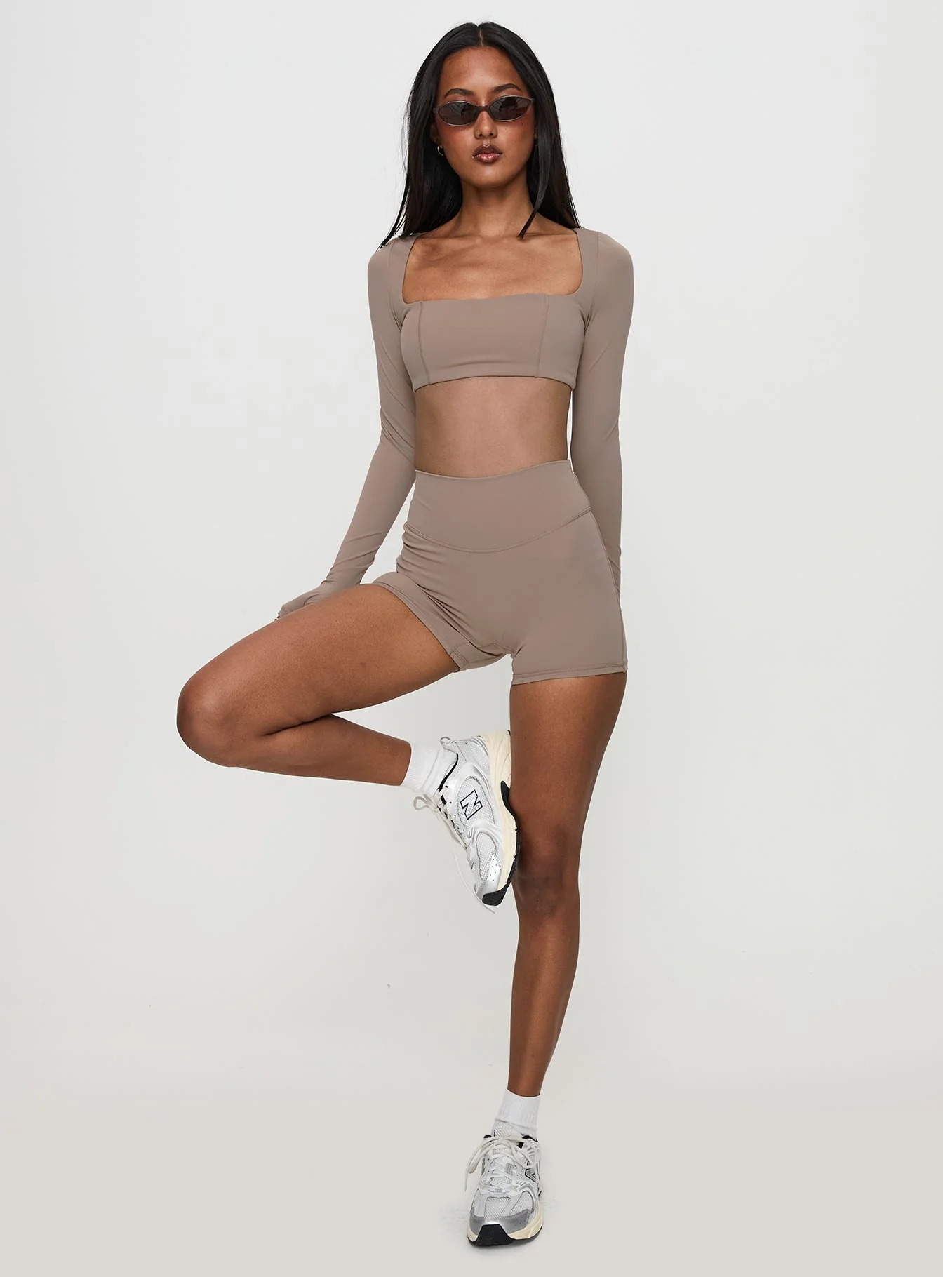 Set Point Active Square Neck Long Sleeve Top Taupe