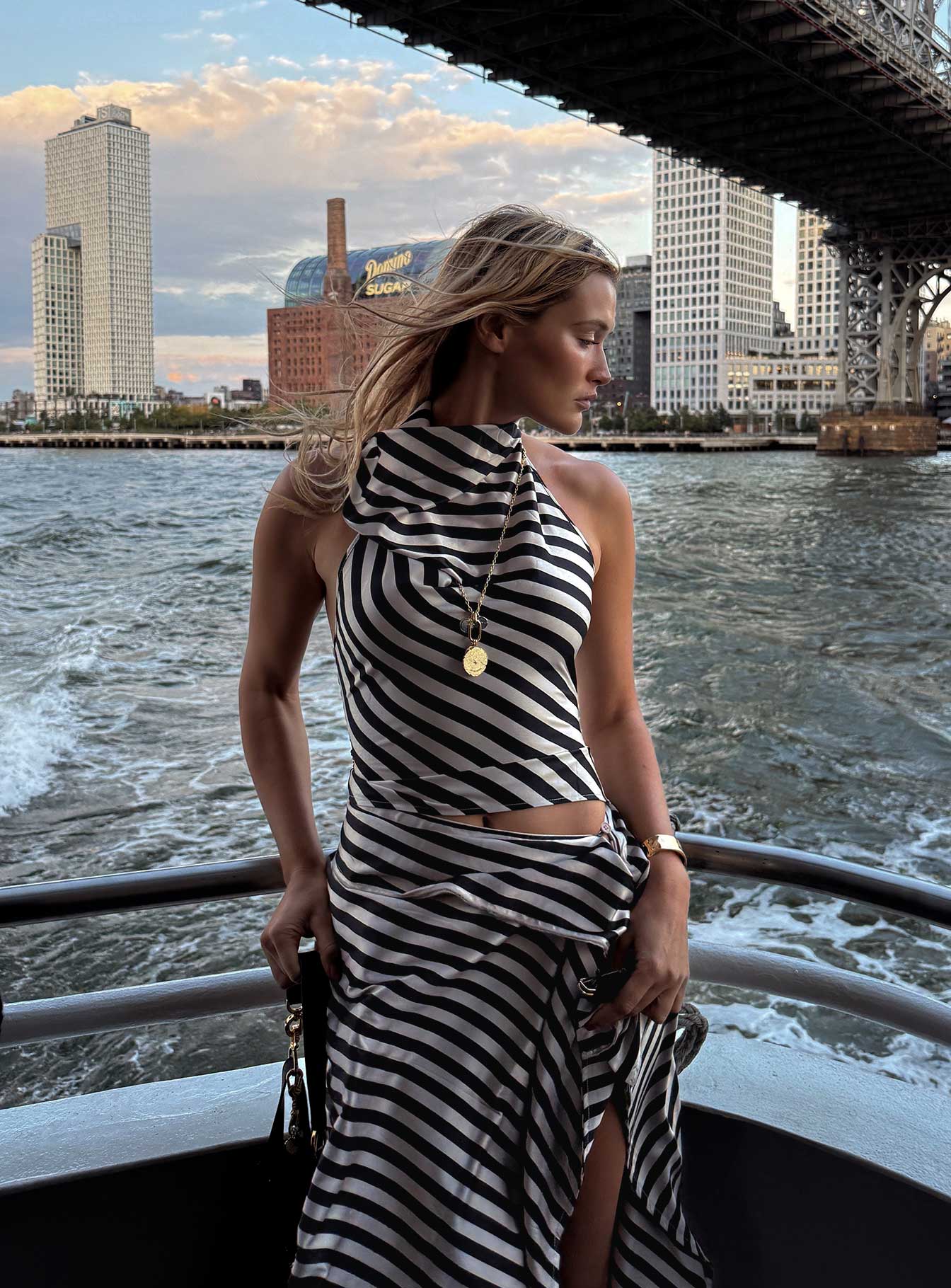 So Composed Boat Neck Long Sleeve Top Latte Stripe