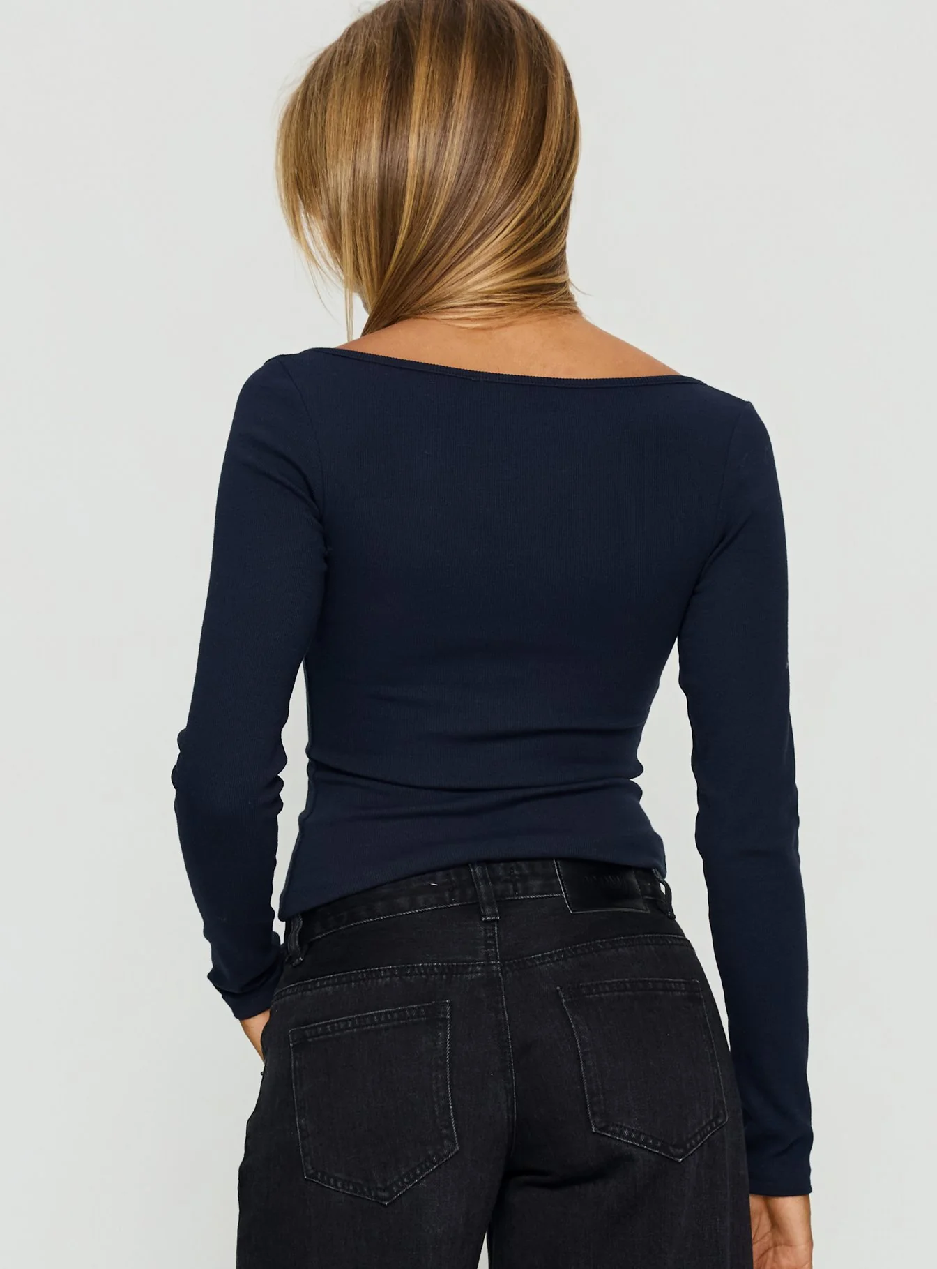 Baseline V Neck Long Sleeve Top Black / White Curve
