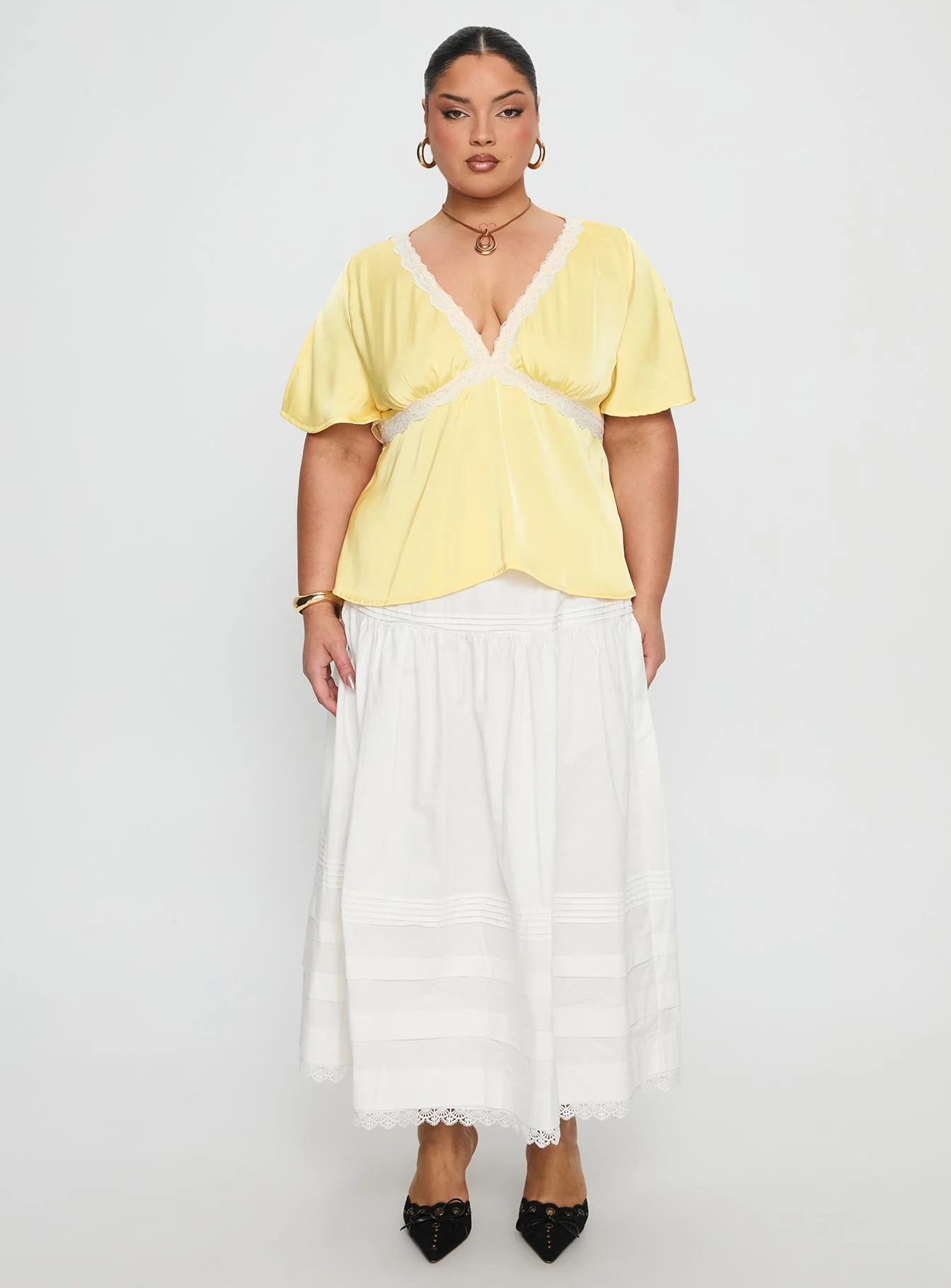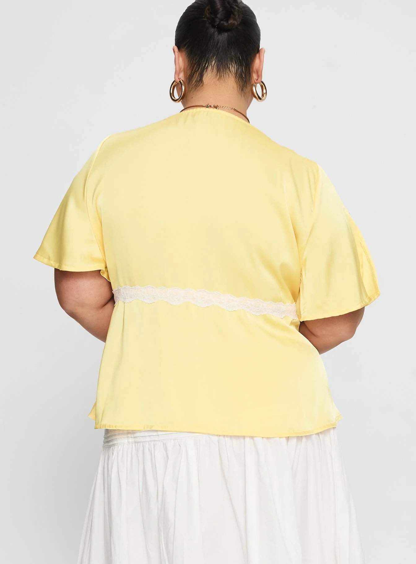 For The Summer Lace Trim Top Yellow Curve
