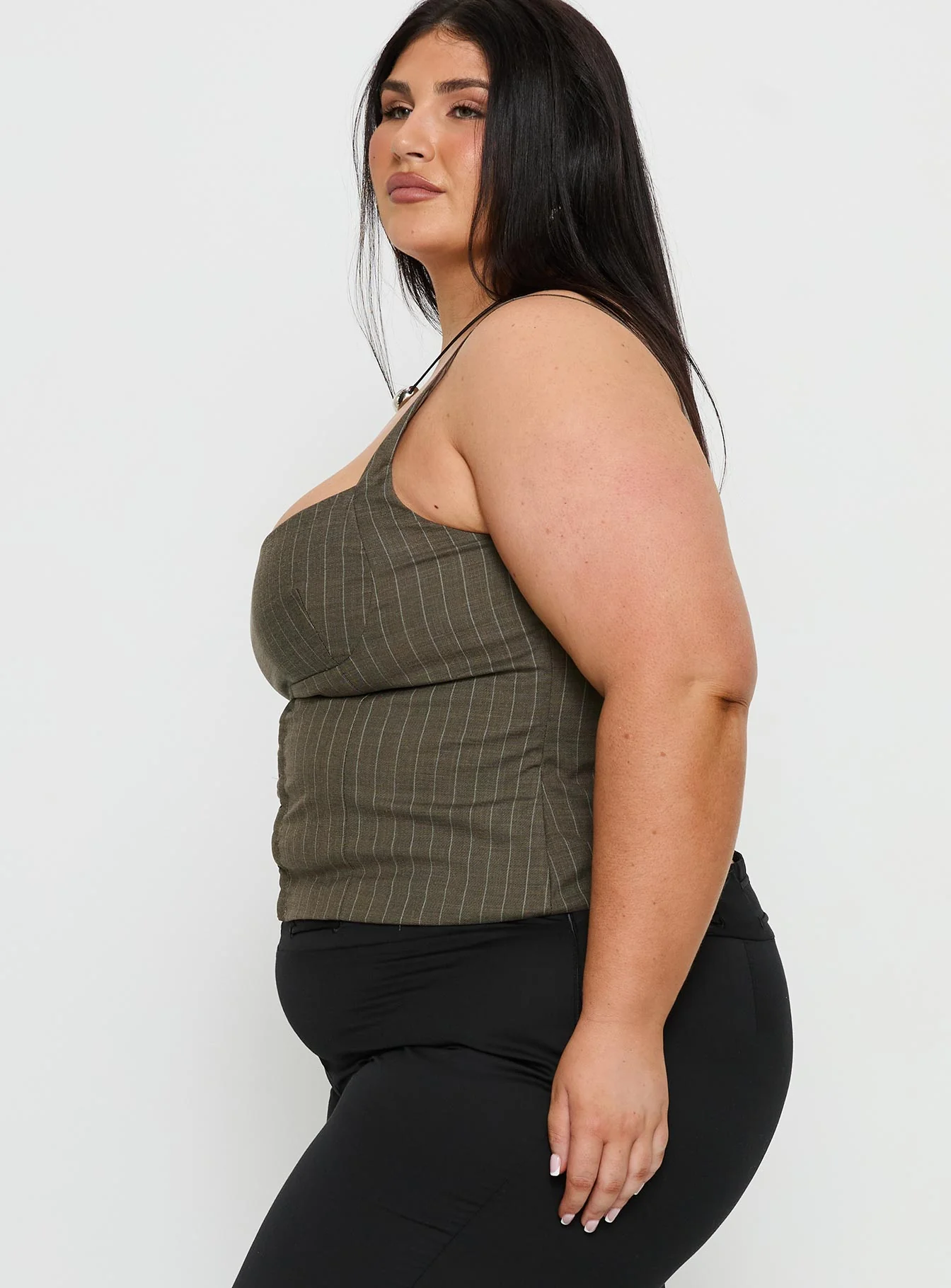 Nylen Tailored Suiting Top Brown Pinstripe Curve