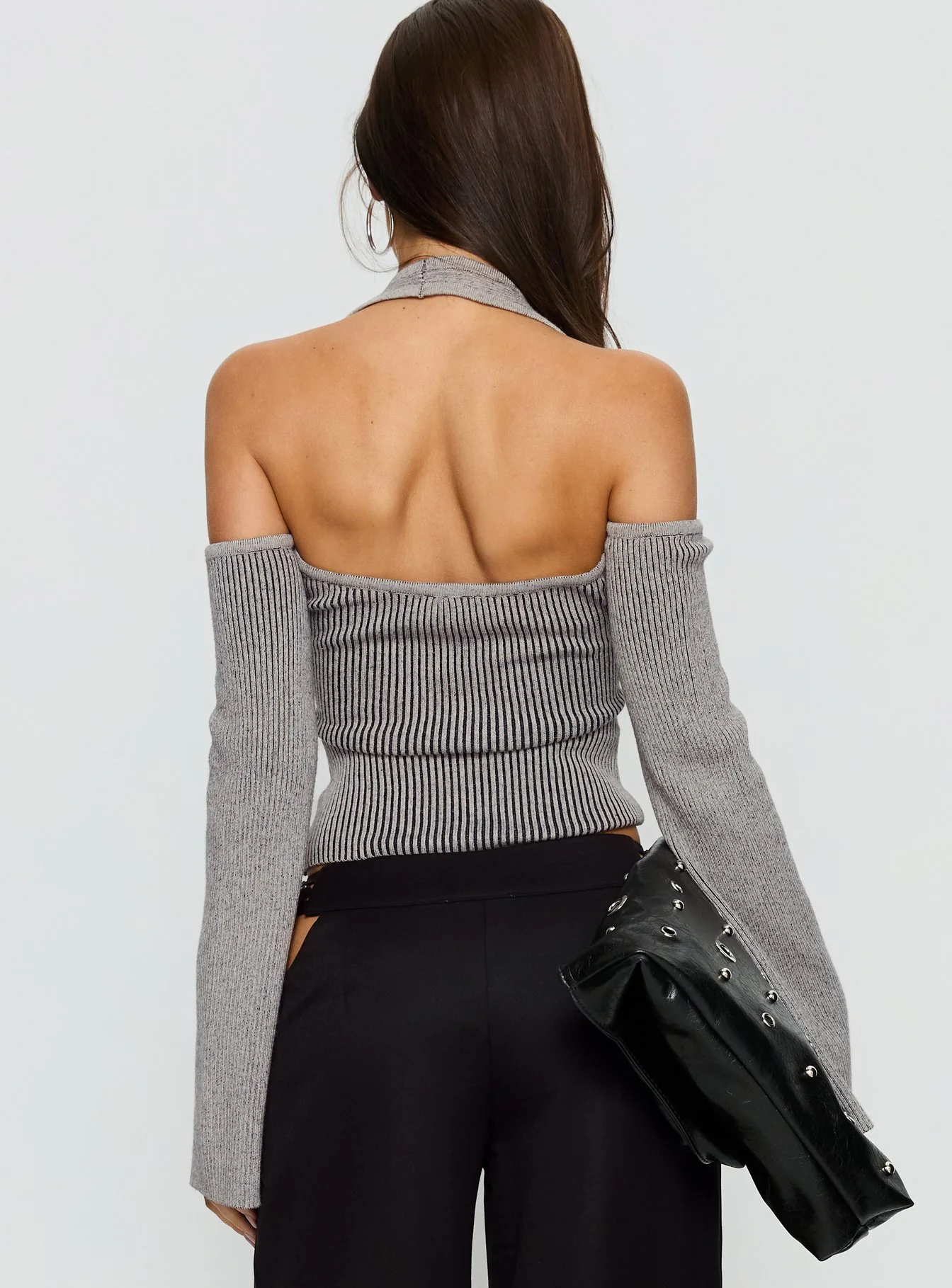 Alayne Long Sleeve Knit Mini Dress Black / Grey Stripe