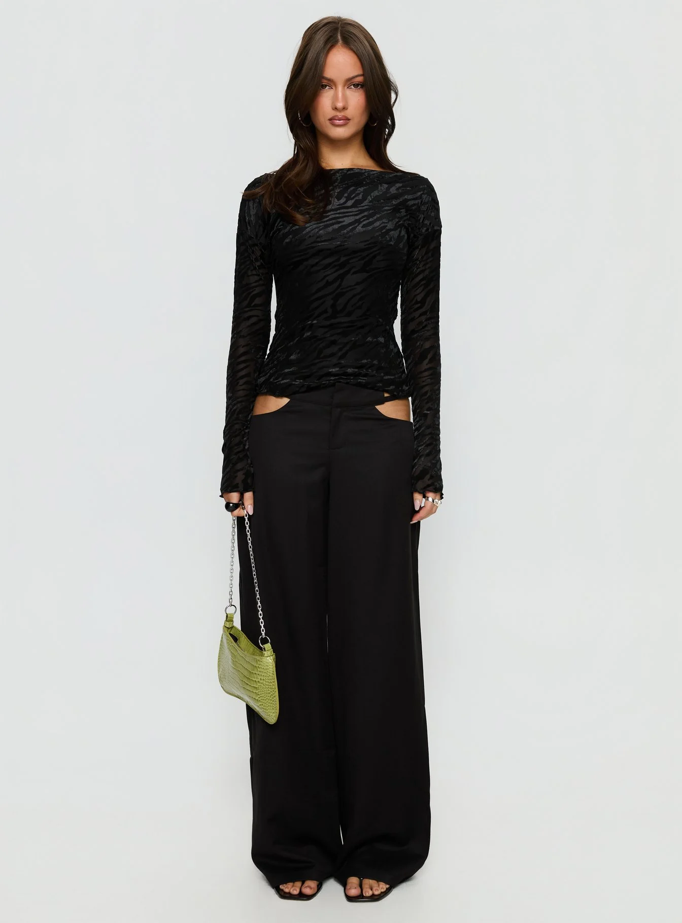 Vila Lettuce Trim Long Sleeve Top Black Zebra