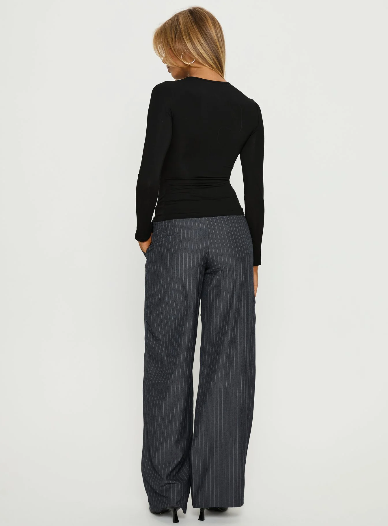 Khane Low Rise Wide Leg Pant Charcoal Pinstripe